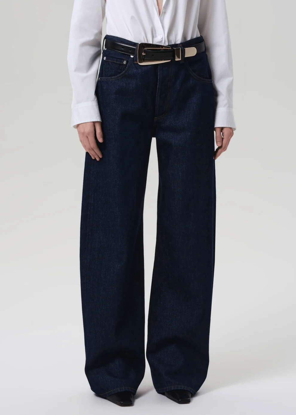 The ‘Ayla’ jean offers a refined take on the baggy silhouette with a relaxed fit that sits away from the body while maintaining a clean, intentional shape. The ‘Amherst’ wash—a deep, dark indigo rinse—adds polish to the laid-back cut. Crafted from rigid regenerative cotton with a soft hand, it’s an easy staple that styles effortlessly with everything from crisp shirting to slim knits.