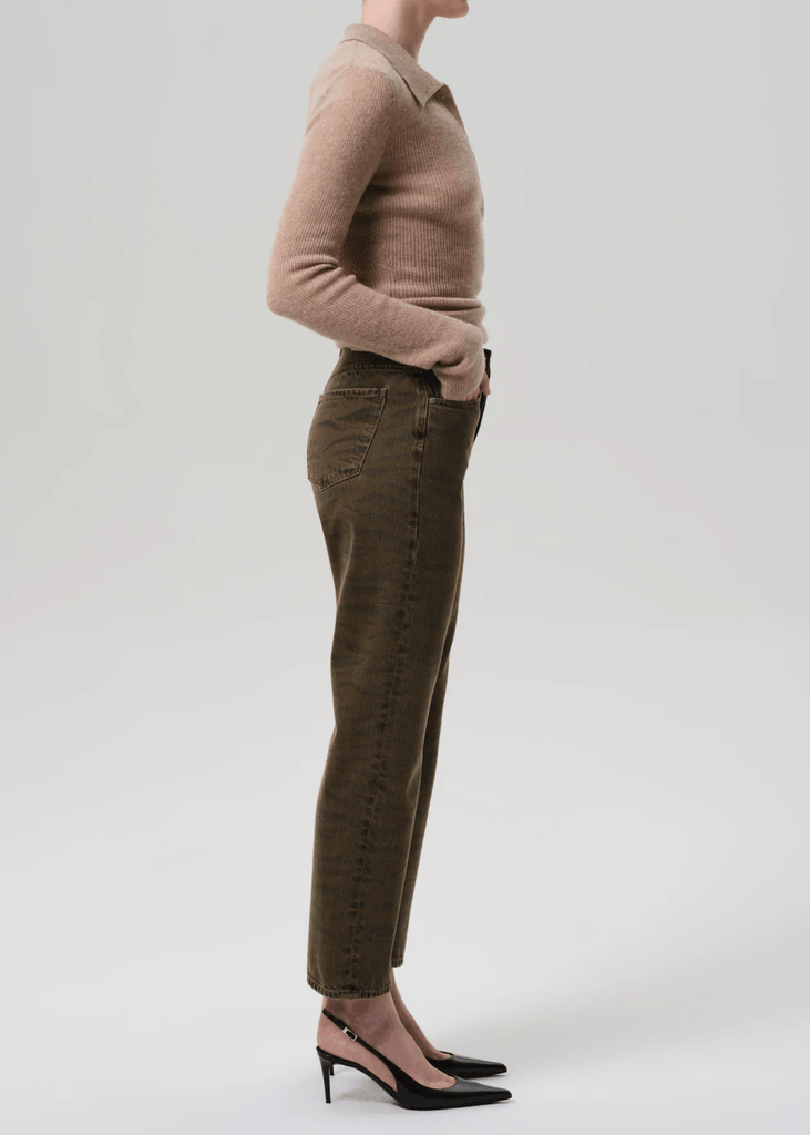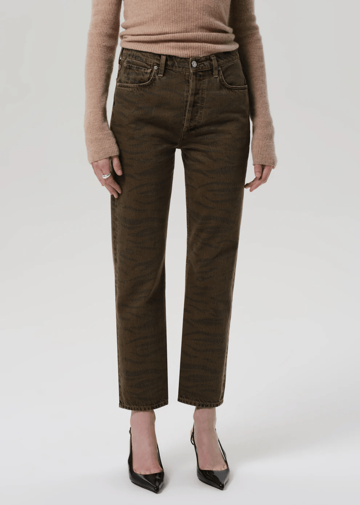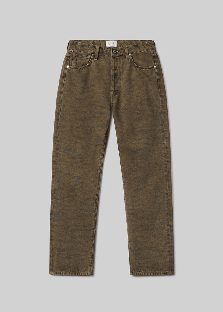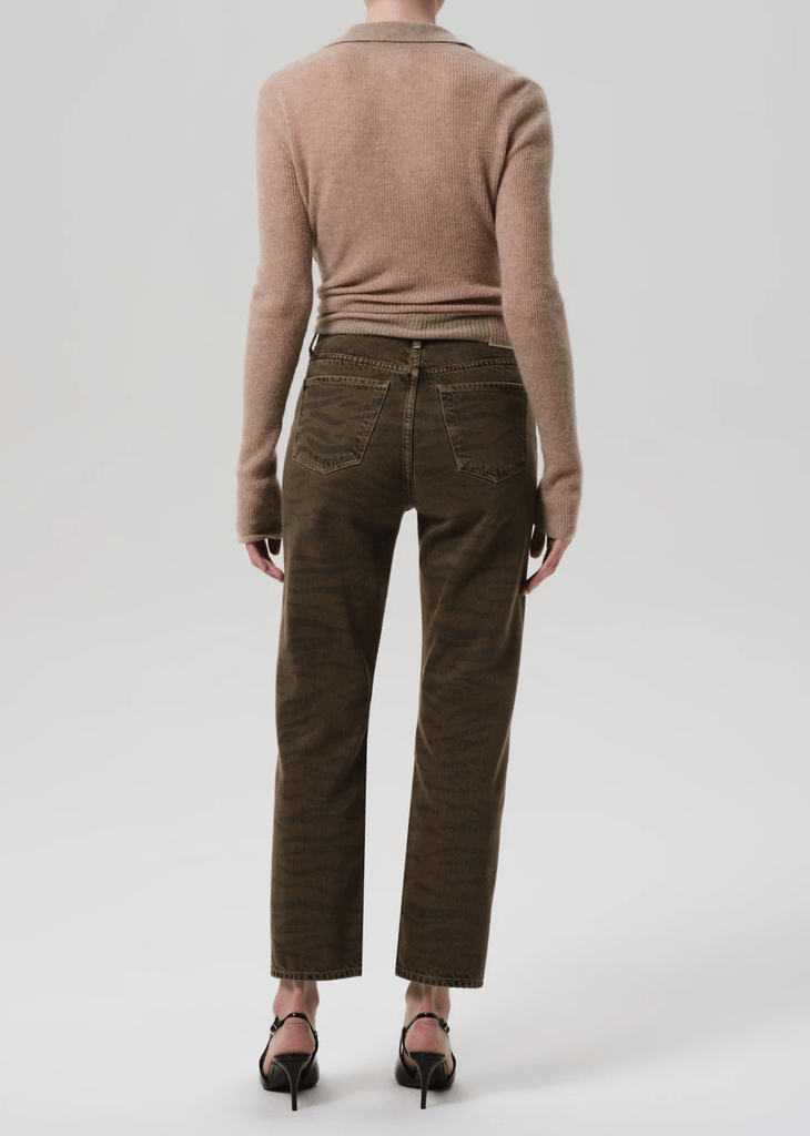 The ‘Blaine’ is a high-rise, vintage-inspired straight leg with an ankle-length inseam and effortless structure. The ‘Medina’ wash is rich brown with zebra print, crafted from non-stretch denim that’s washed down for a lightweight, ultra-soft feel. Style with relaxed tailoring or a slim knit for an elevated, everyday look.