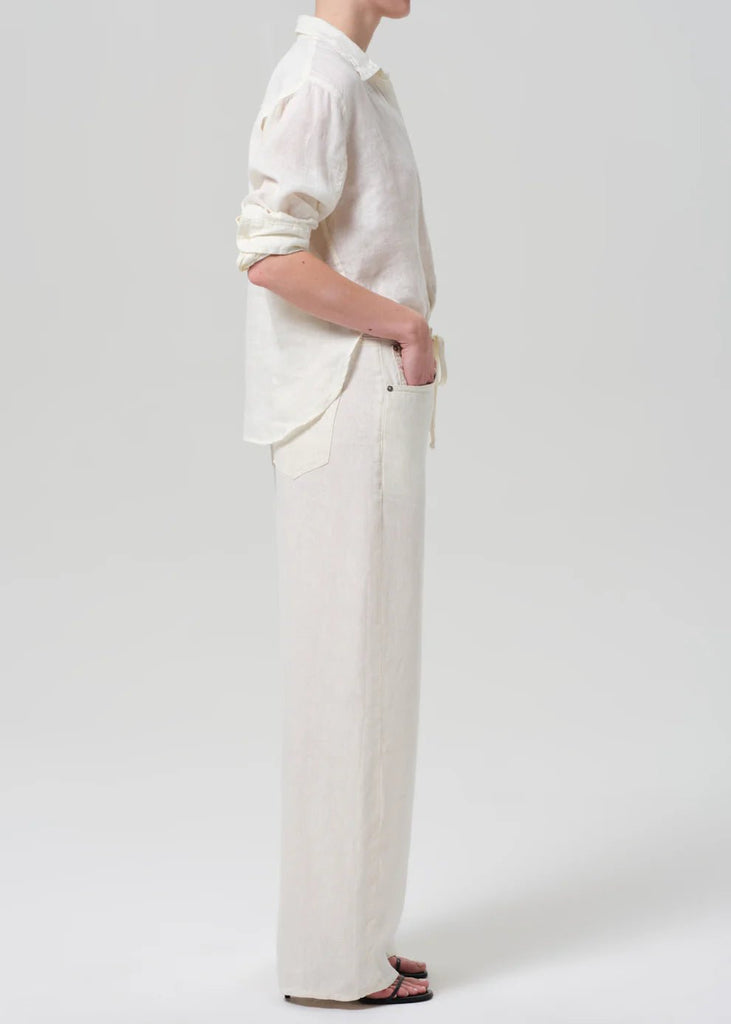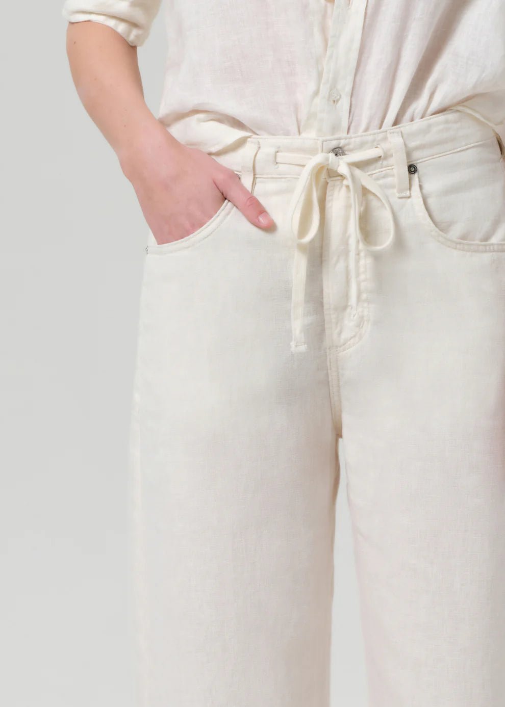 The Brynn Drawstring Trouser offers a relaxed fit with a comfortable drawstring waist, making it the perfect laid-back linen pant. Effortlessly stylish, this versatile trouser pairs beautifully with tonal linen pieces or a matching tank for a chic, coordinated look ideal for warm weather days and vacation-ready escapes.