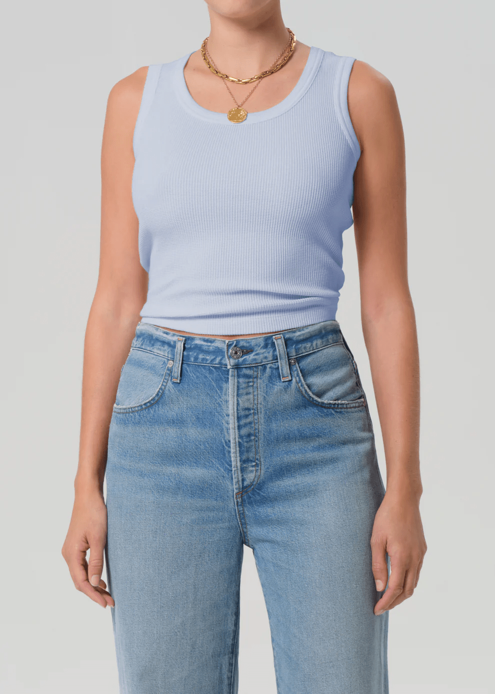 Looks Like: Light blue waffle thermal sleeveless tank