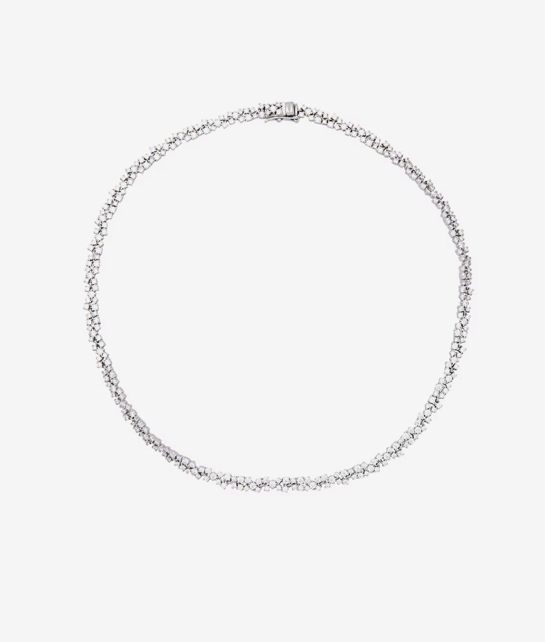 A refined classic with a high-impact finish, the Kalista Pavé Necklace is lined with brilliant-cut stones set in a seamless silhouette. Its fluid drape and radiant sparkle make it an effortless statement—ideal for both evening looks and elevated everyday styling.