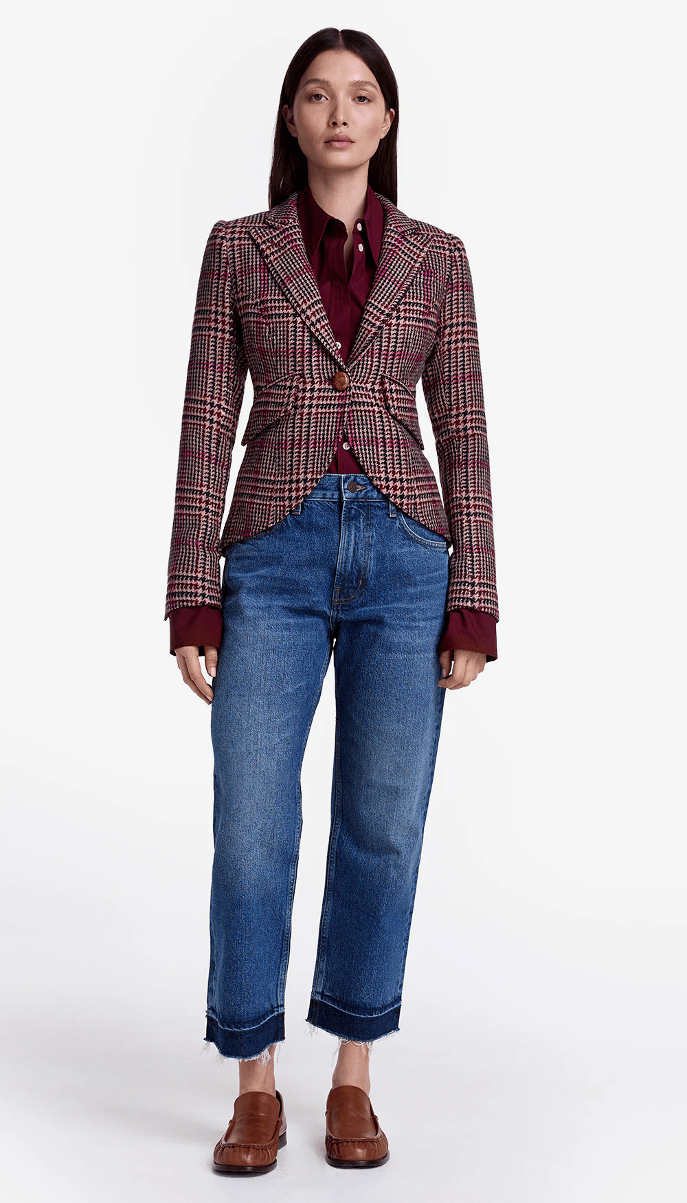 Style Notes: Play with pattern by layering this blazer over the Box Pleat Shirt in rose stripe.