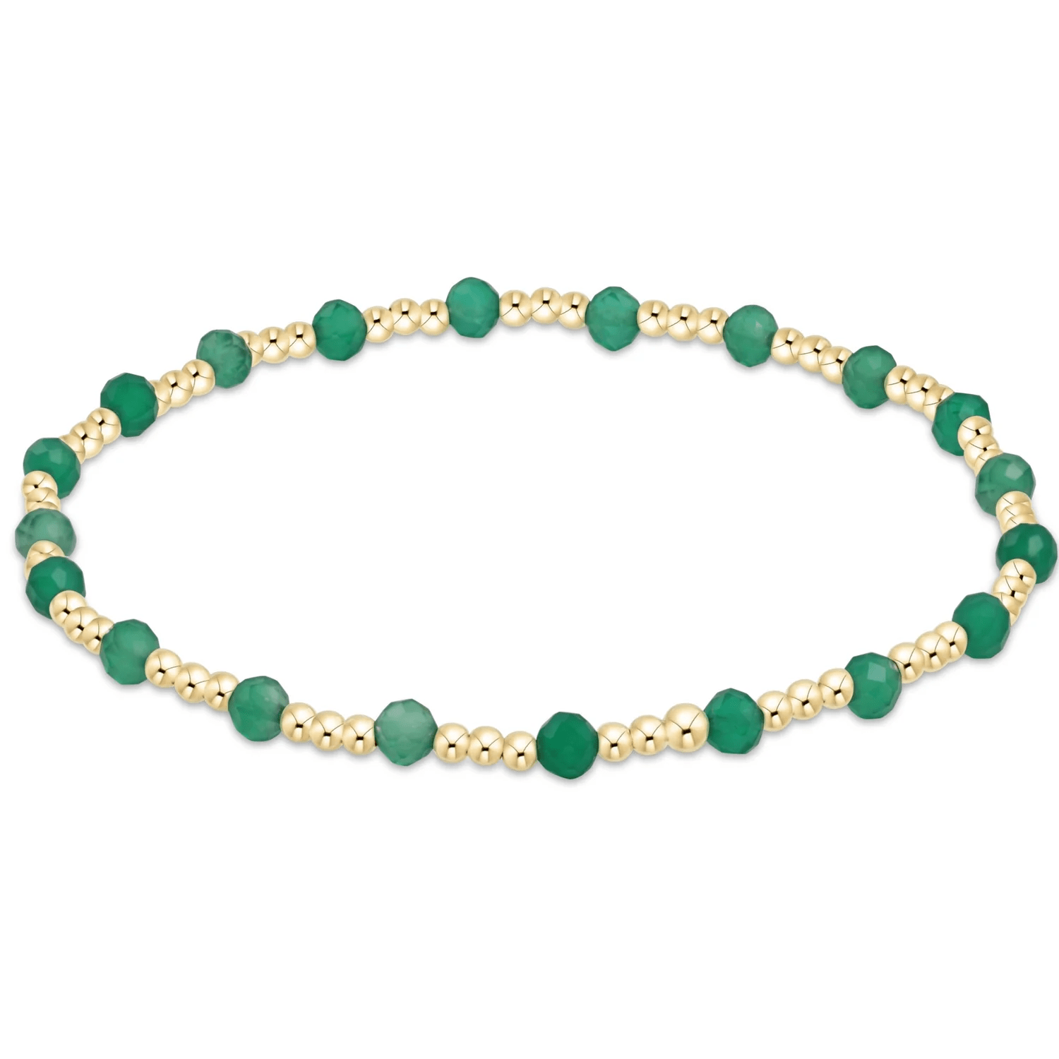 gemstone gold sincerity pattern 3mm bead bracelet - green onyx