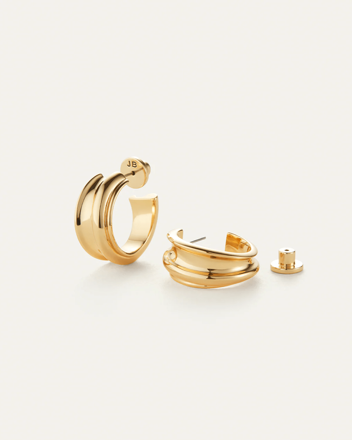 These gold hoop earrings boast deep contours. They are paired with Flat Disc Earring Backs for extra comfort. Finished in high-polish 14k gold.