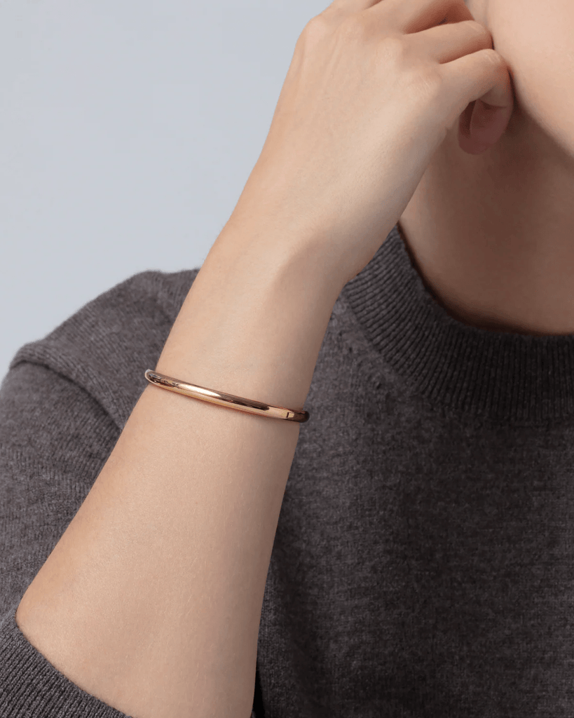 This wear-with-anything bangle is the missing piece in your bracelet collection — wear it on its own, doubled up or mixed in a stack with best selling Dane and Gia. Sleek, modern and water-resistant, you'll be reaching for this starter bangle on repeat. This solid bracelet boasts a flattened interior for comfortable, all-day wear.