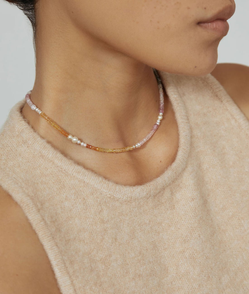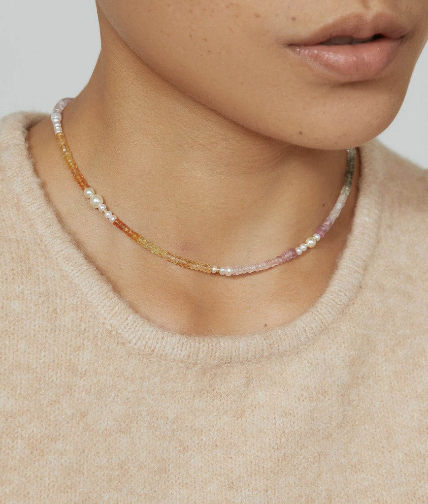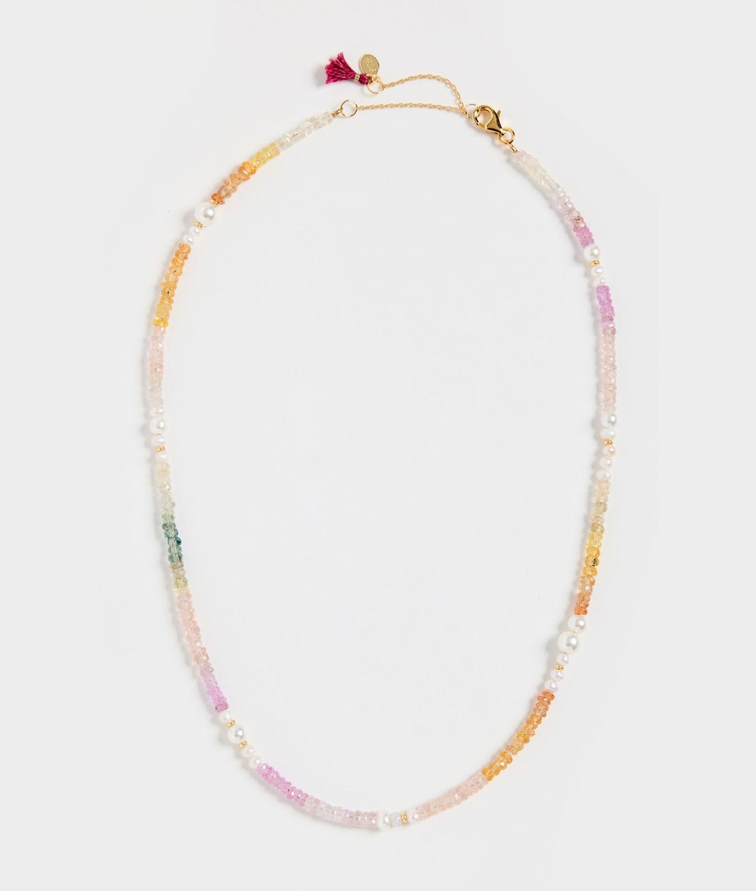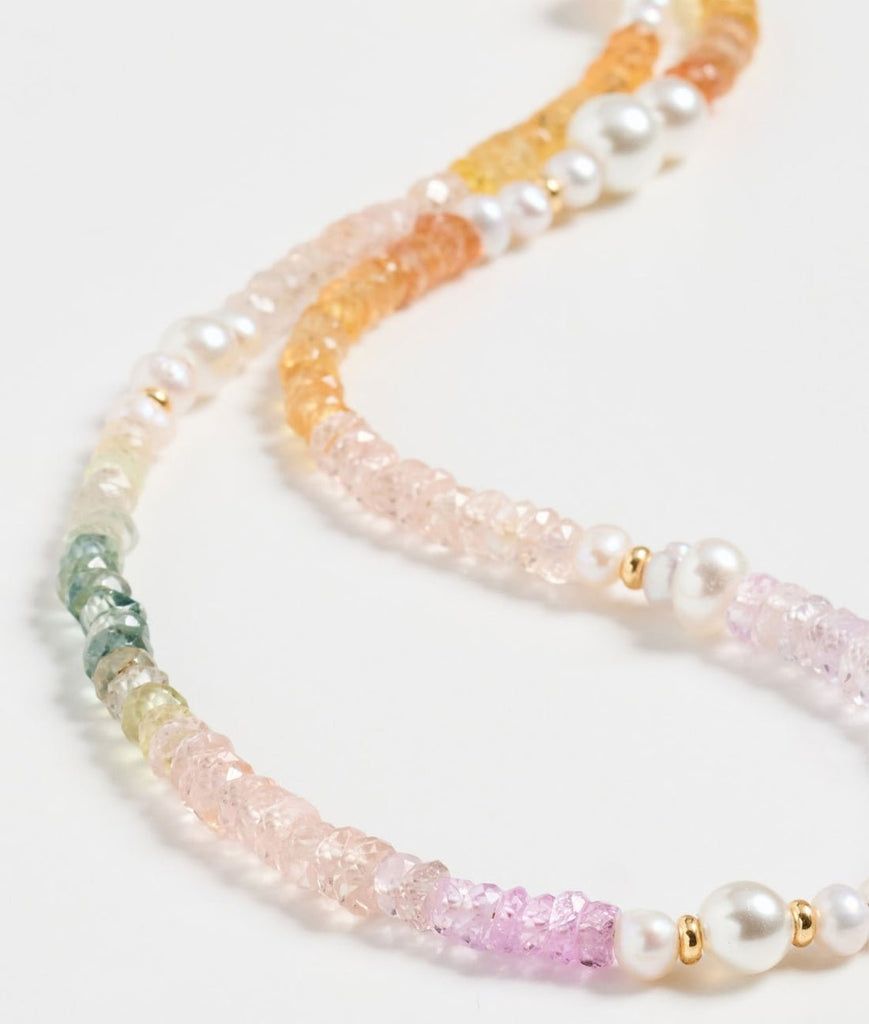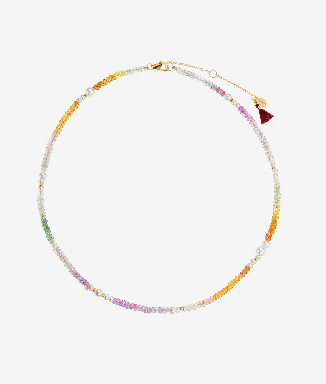 Vivid three row wrap bracelet/necklace with genuine faceted gemstones creating an ombré rainbow effect.
