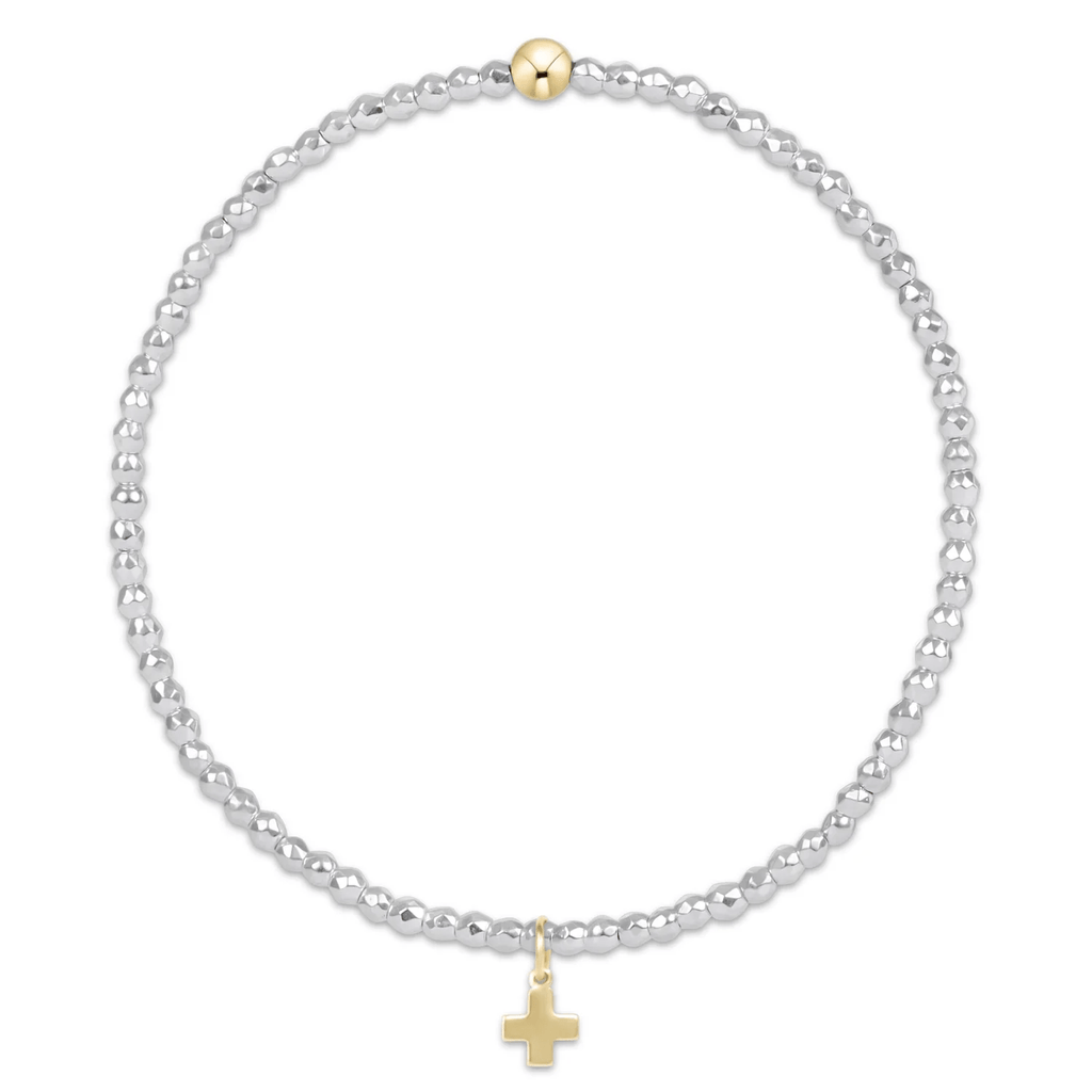bright silver faceted hematite 2mm bead bracelet - signature cross gold charm