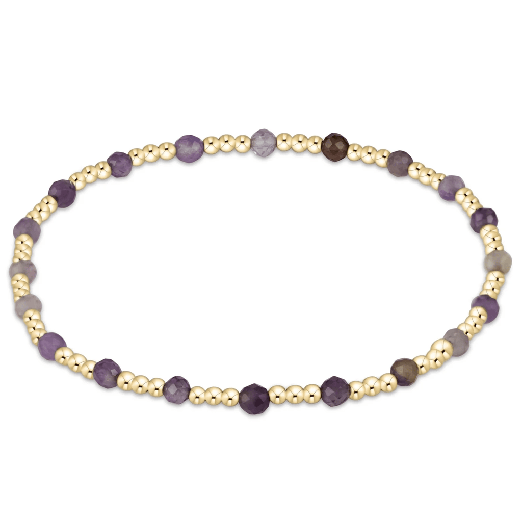 gemstone gold sincerity pattern 3mm bead bracelet - amethyst