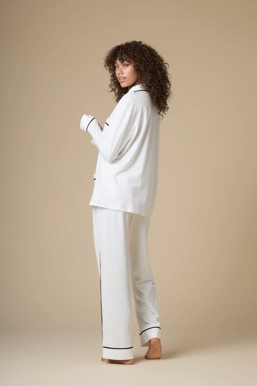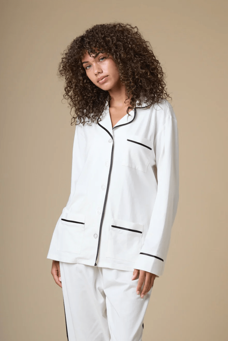 Luxe Stretch Cotton Pajama Set in Pearl