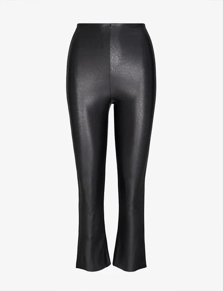 Faux Leather Cropped Flare in Black - S is backordered and will ship as soon as it is back in stock.