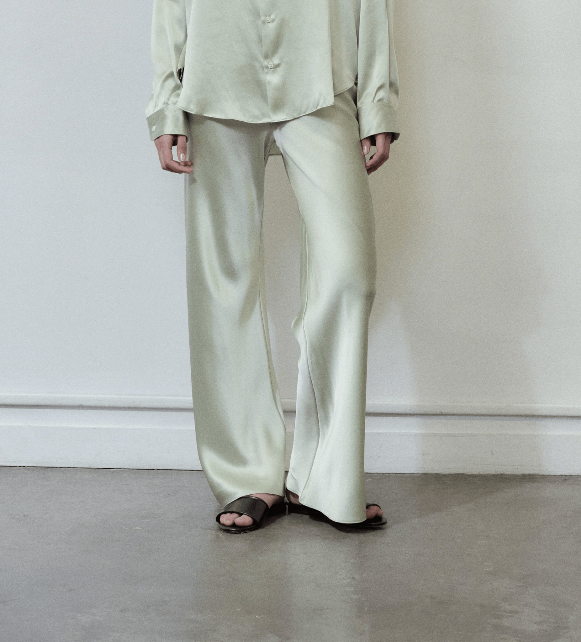 A universally flattering silhouette, The Silk Bias Pant is crafted from sumptuous silk charmeuse and cut on the bias to naturally elongate the leg. A slim fully-covered elastic waistband provides comfort, while the fluid drape offers laid-back elegance from day to night.
