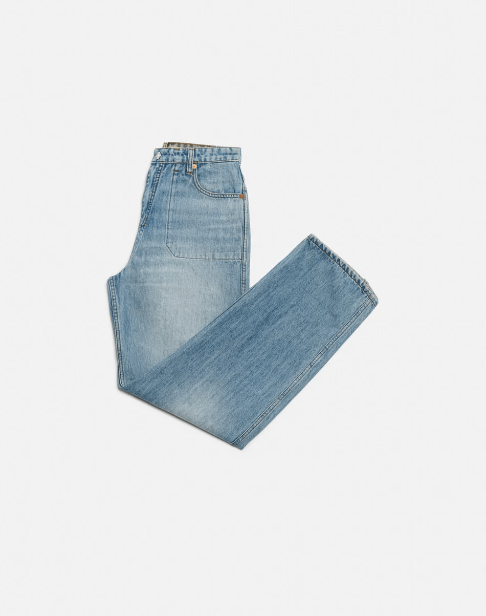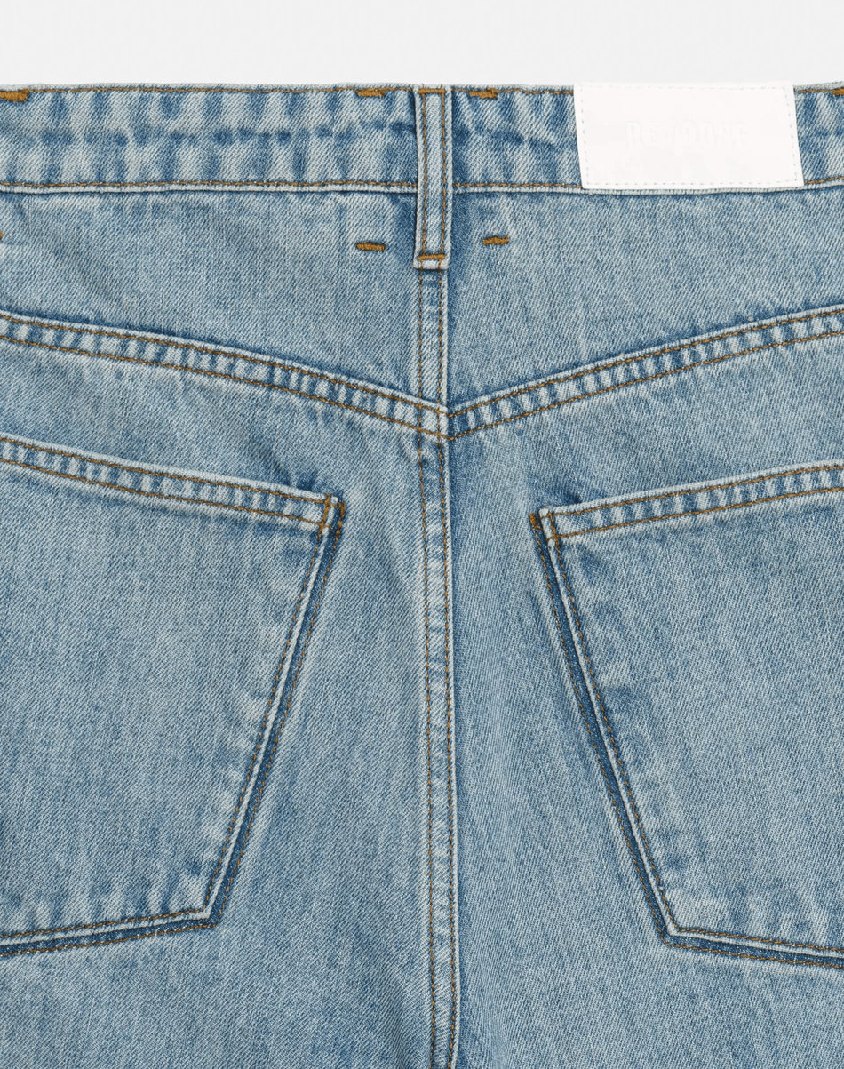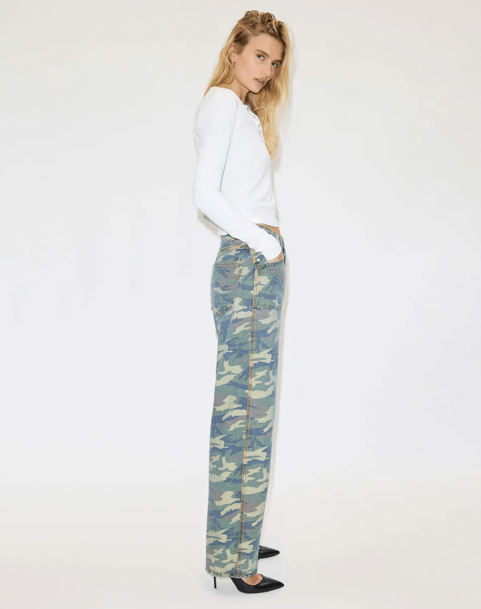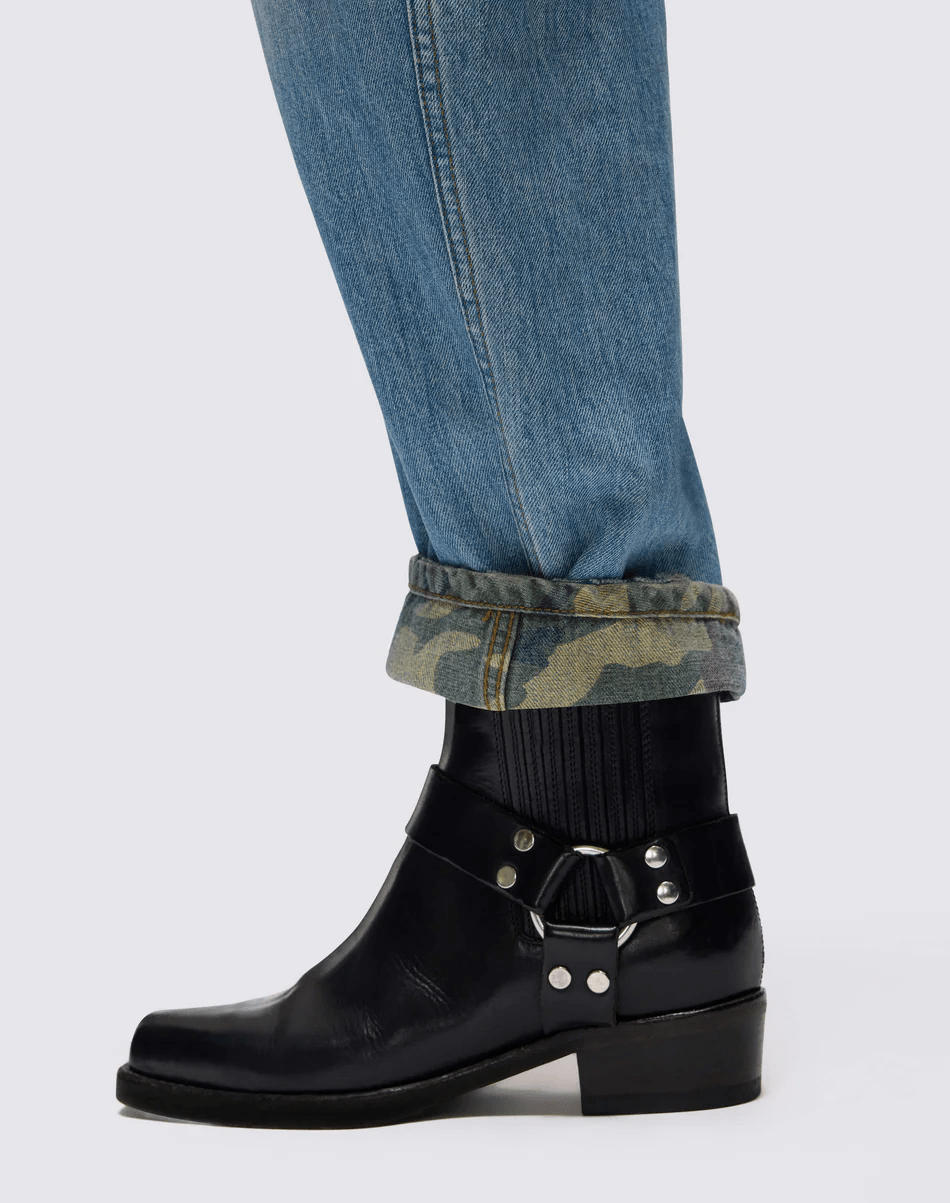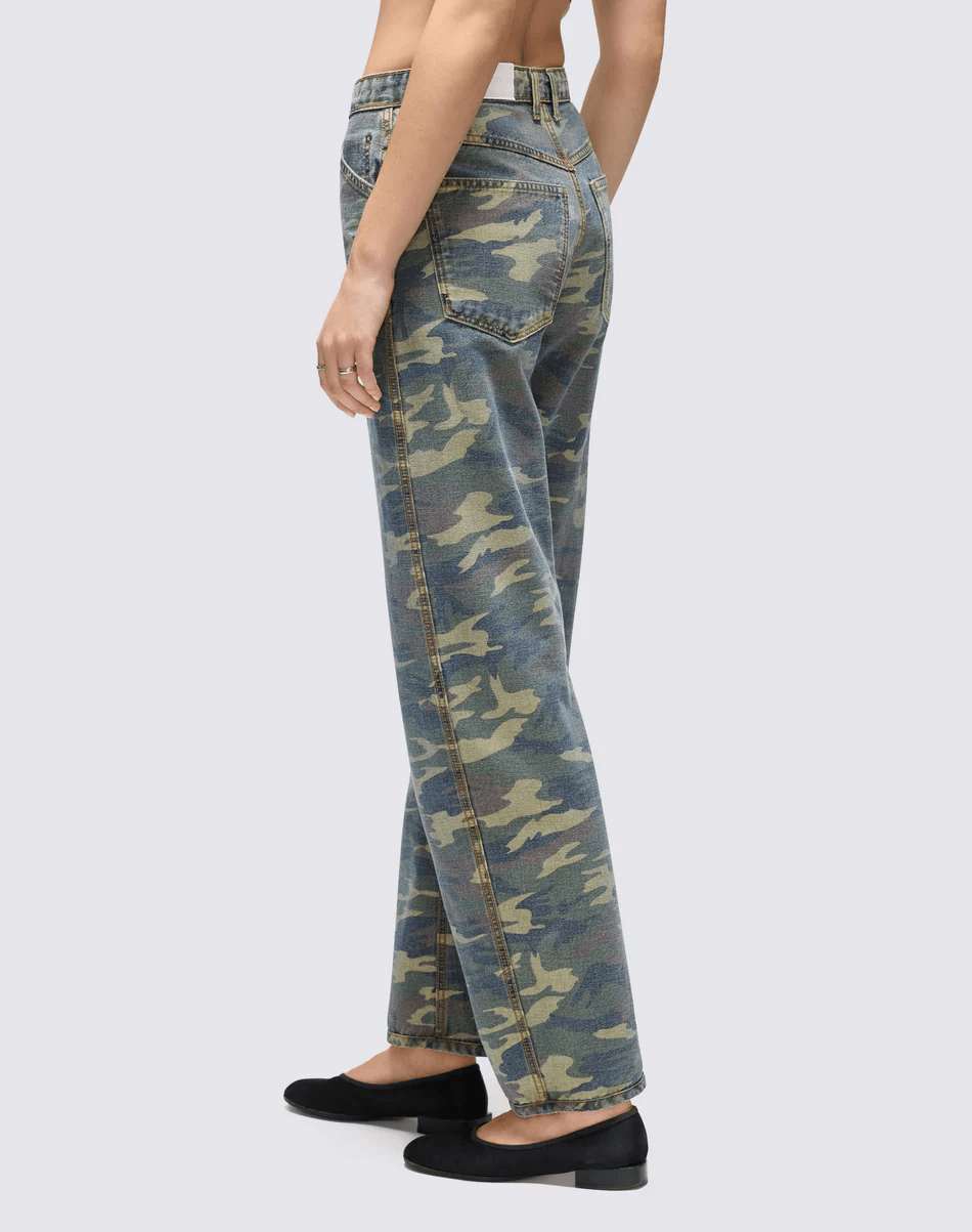 The Rewind Jean flips between a bold printed interior and classic denim exterior, giving you two distinctive looks in one sculpted modern fit. Features an authentic vintage inspired wash on the denim side then on the workwear side features a cool camo print.