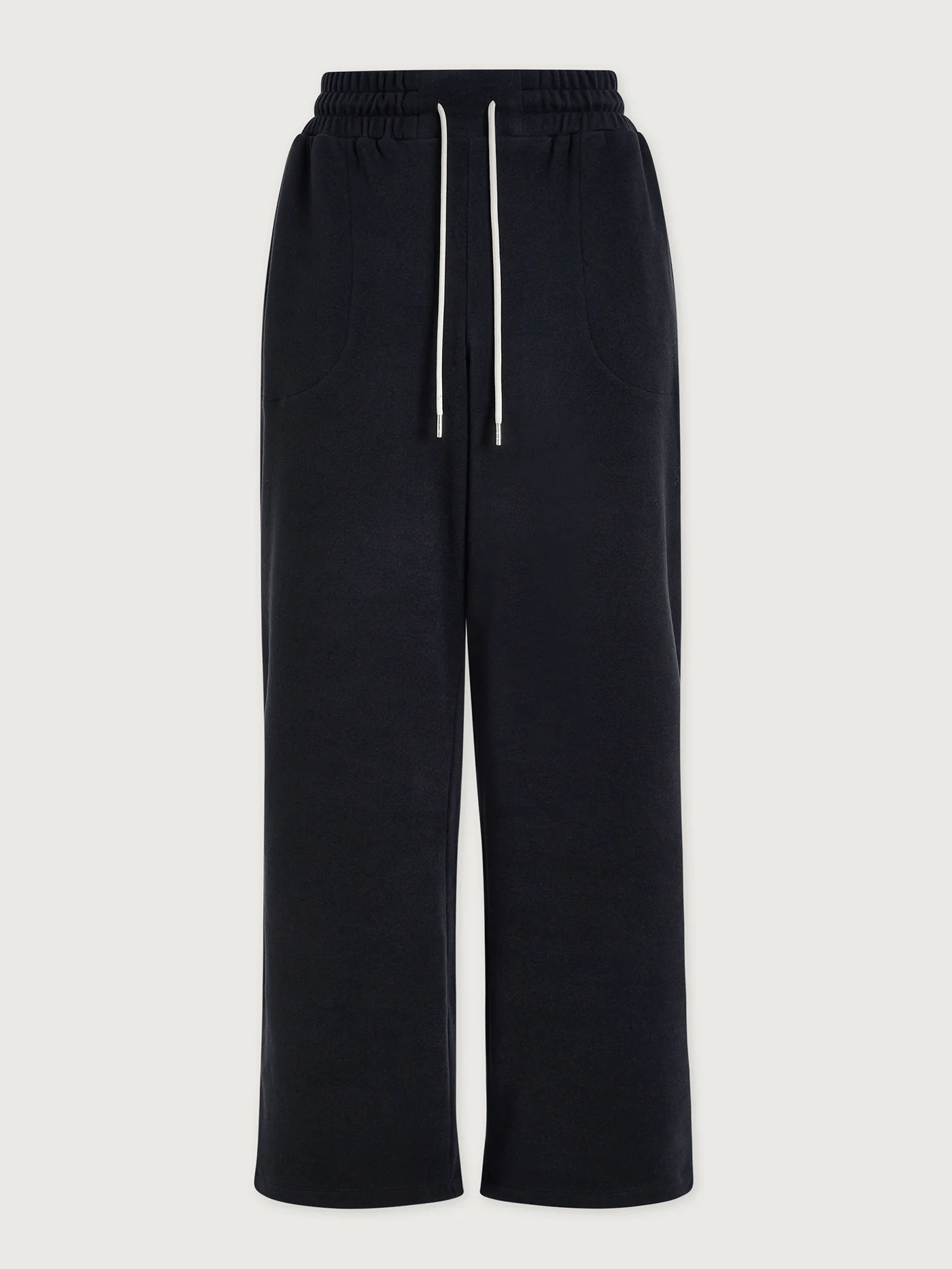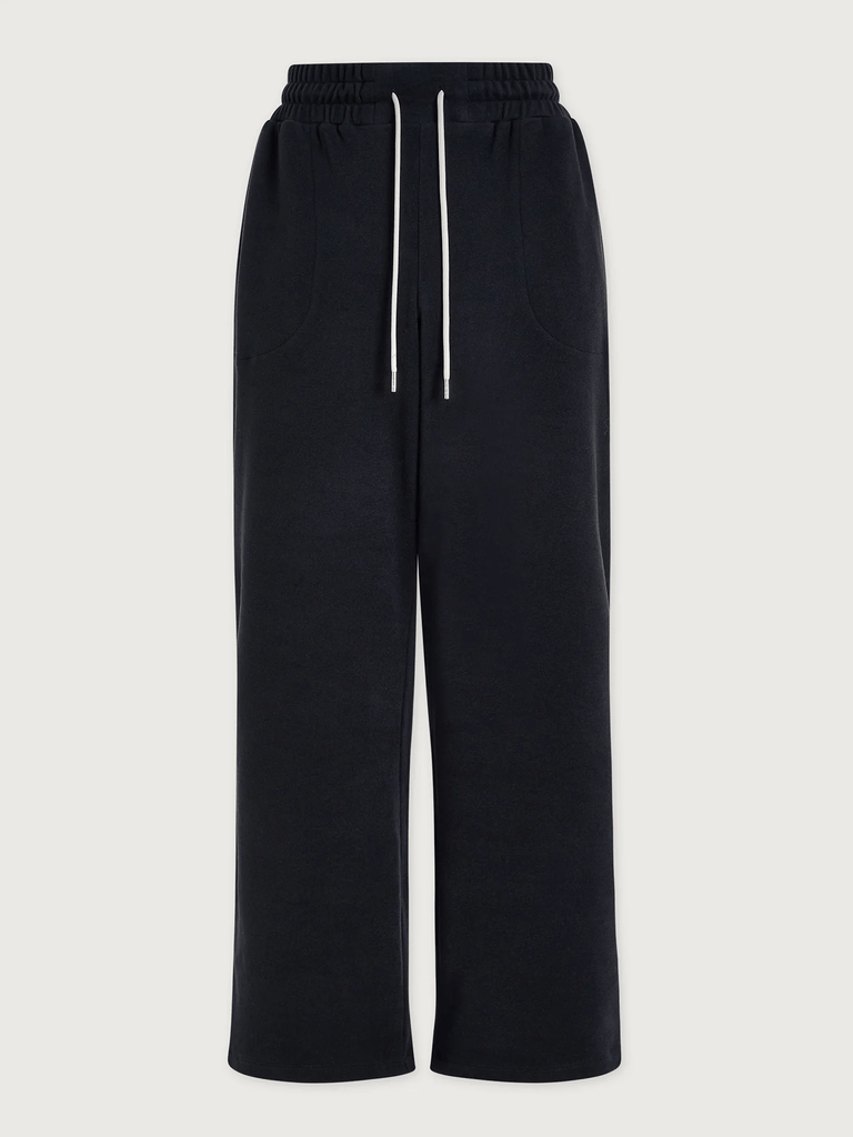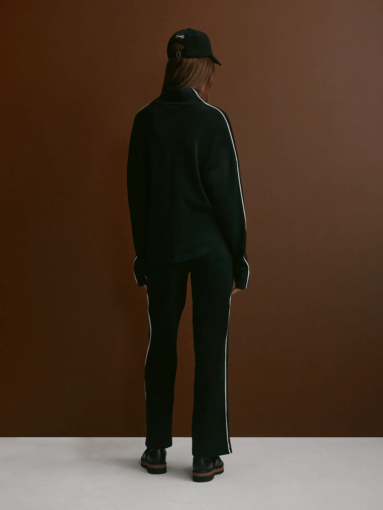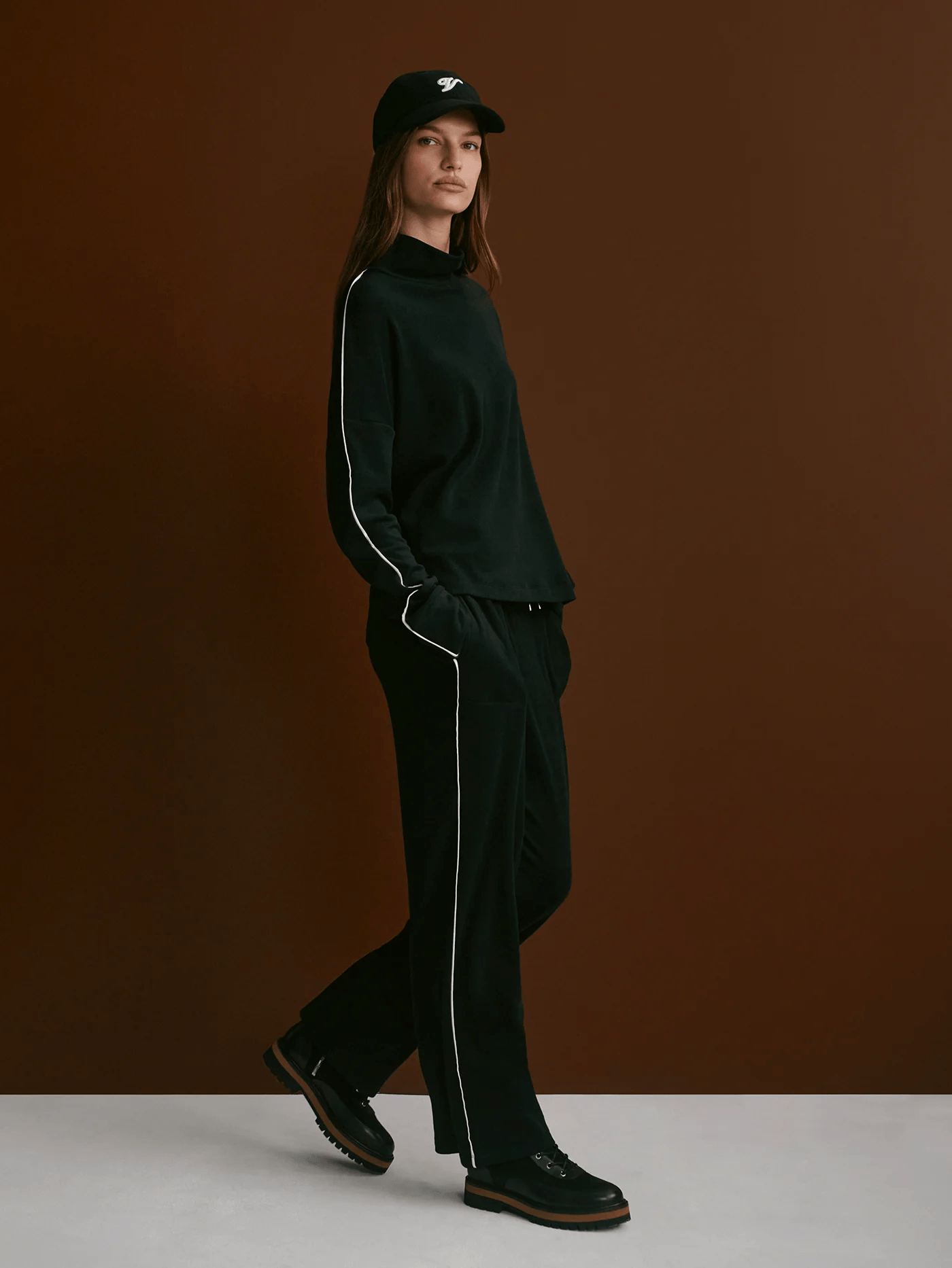 Brushed Rib Straight-Leg Pant 30" in Black / Snow White