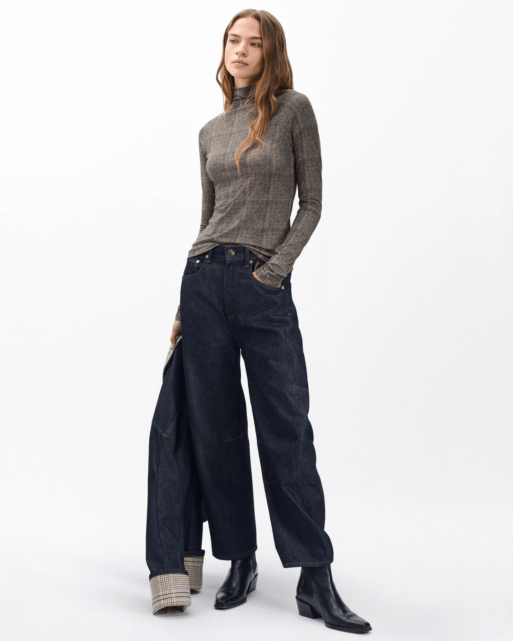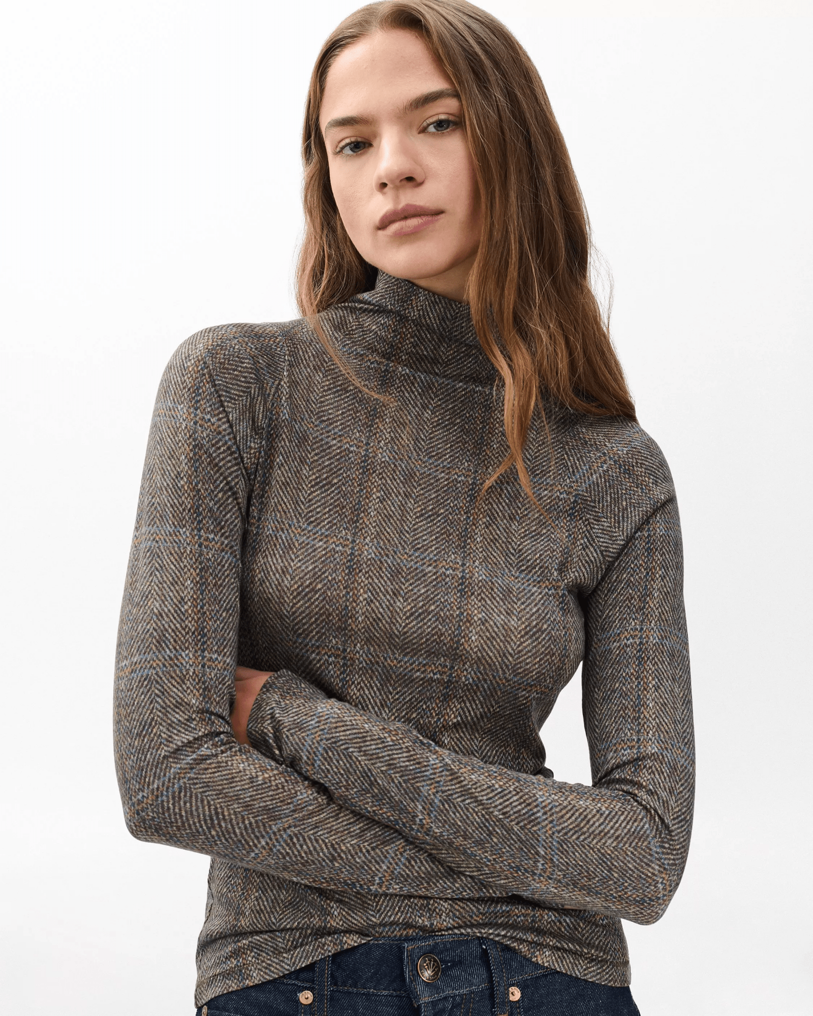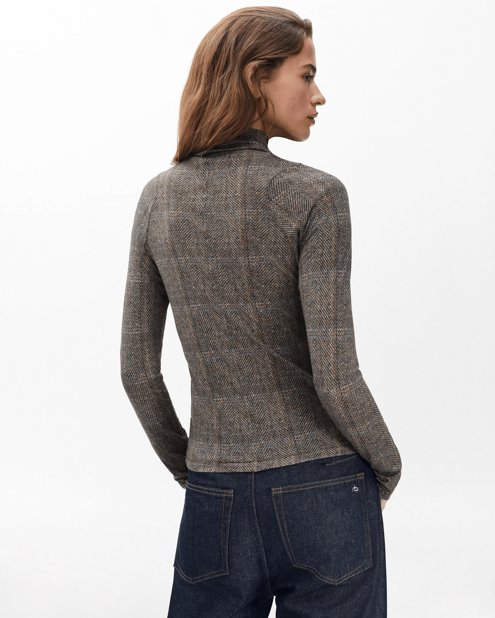Shaw Plaid Turtleneck Tee in Brown Multi