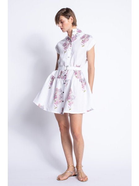 Introducing the Zelie Print Mini Dress! This is a stunning blend of comfort and style. Made from 100% linen, this dress features a beautiful poppies pattern and a flattering belted waist. Elevate your wardrobe with this elegant and versatile mini dress.