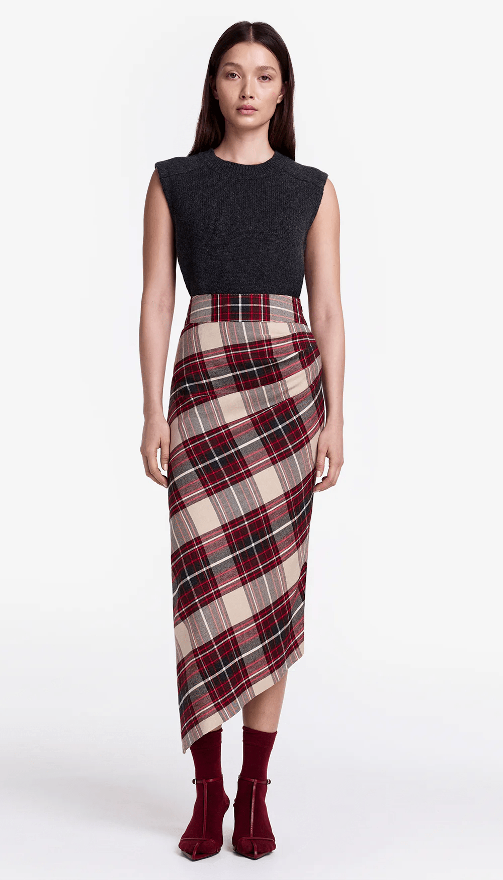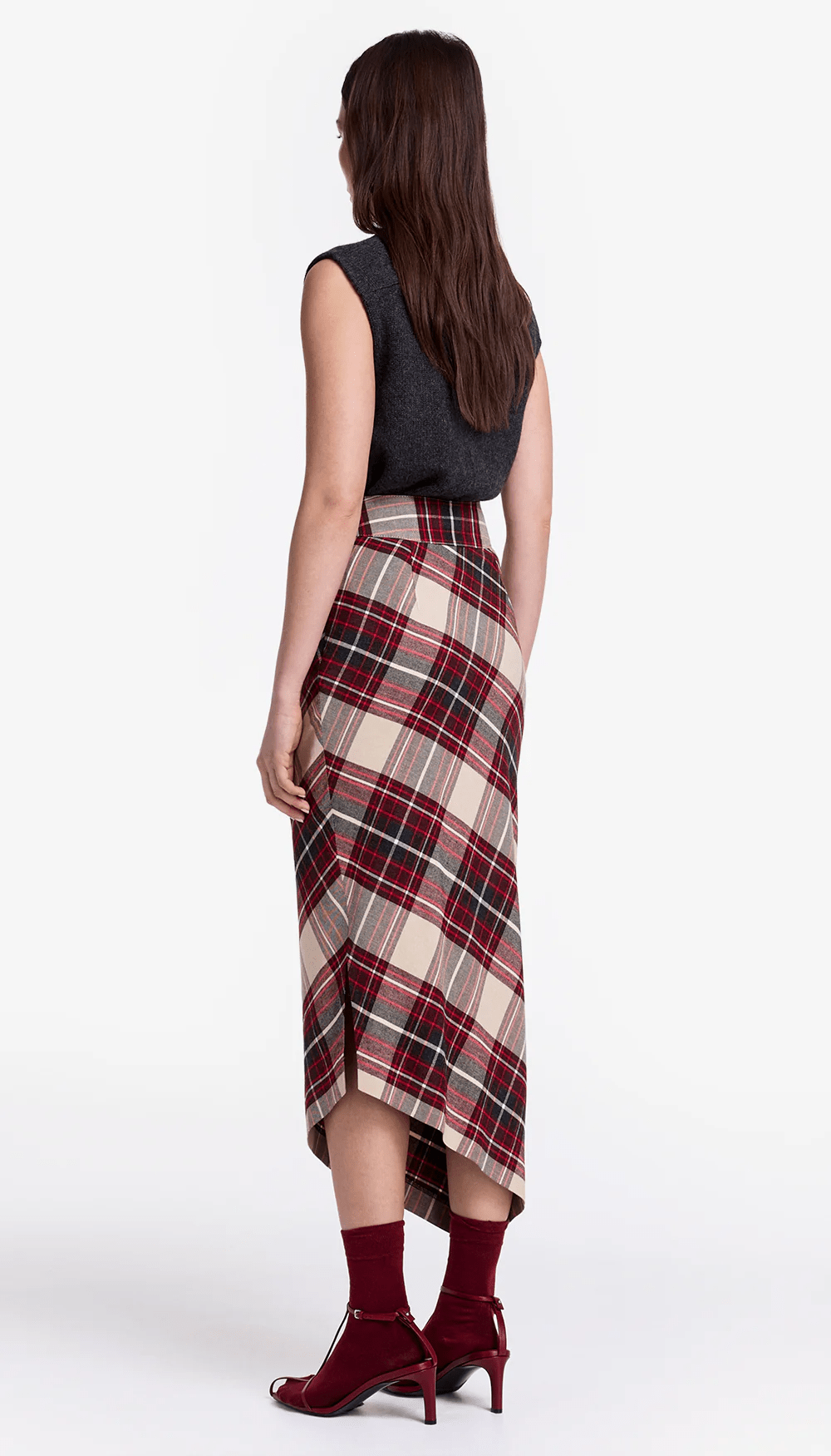 Details: Mid-rise and fitted through the waist and hips with partial lining, this midi-length skirt is cut on the bias and features flattering tucks at the hip. This garment fits true to size, take your usual size.