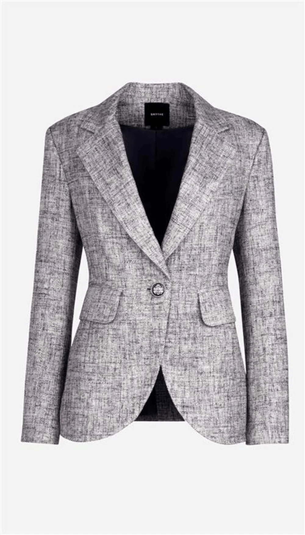Style Notes: We like this blazer layered over the Scrunch Sleeve Crewneck Tee in navy floral.