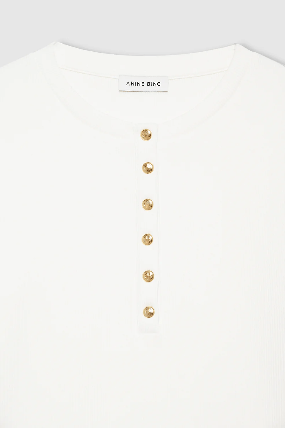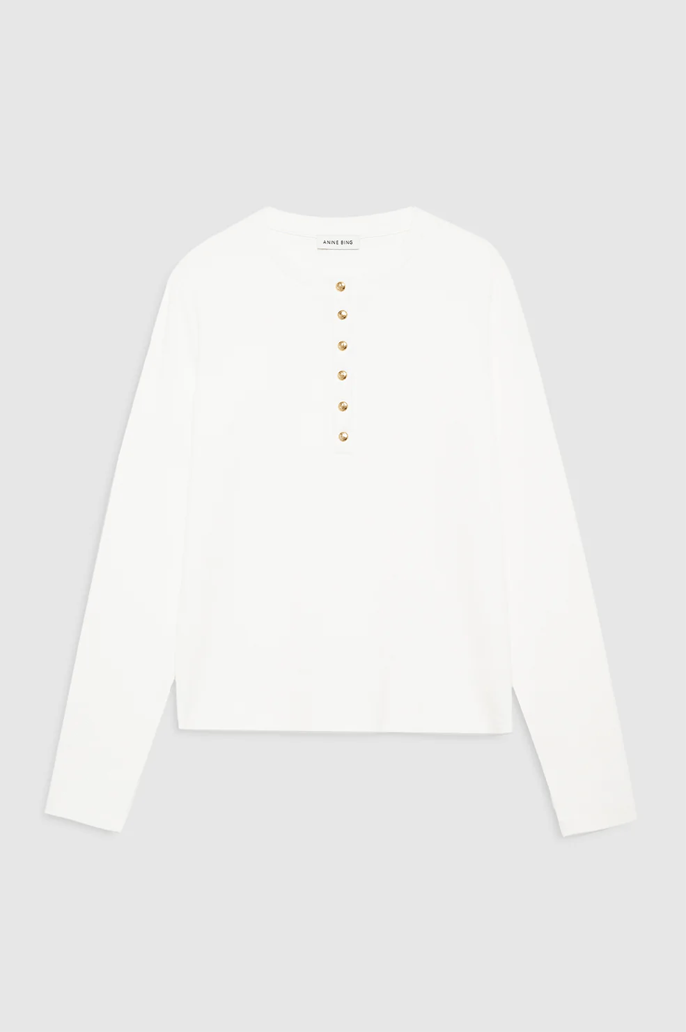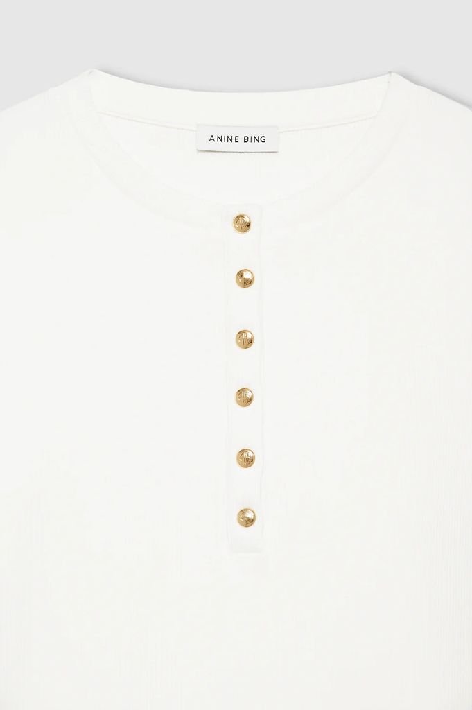 A modern Henley made from a dense cotton-spandex blend with an all-over ribbed texture and a soft hand.