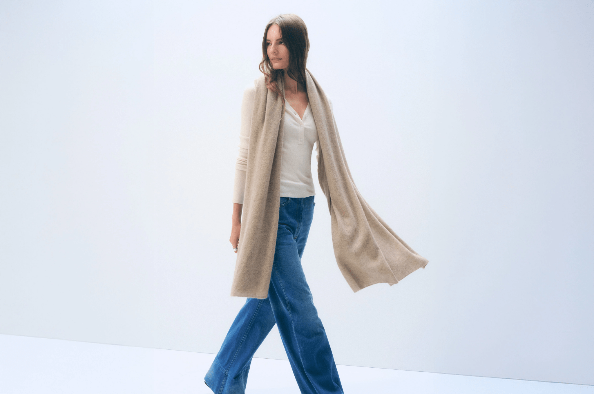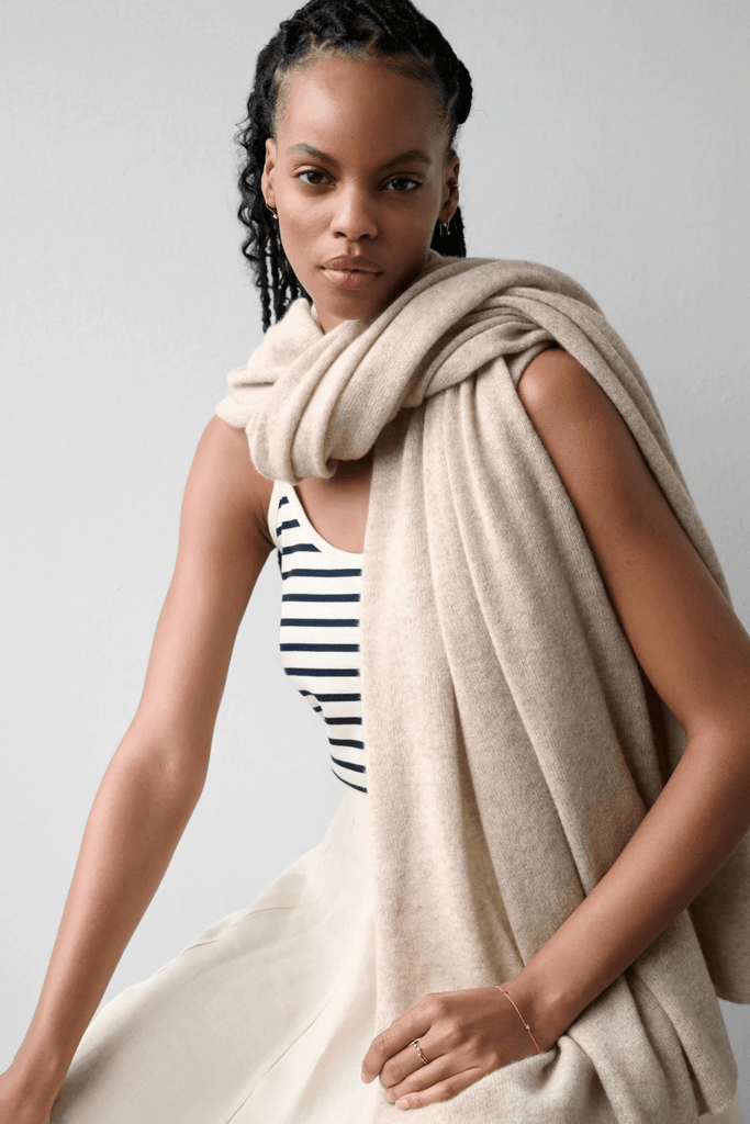 A best seller since its debut. This cloud-soft, generously sized wrap boasts endless styling power. Featuring nearly seven feet of pure cashmere, it's offered in a wide range of classic and limited-edition colors. Wear as an evening wrap, scarf, or blanket while traveling.