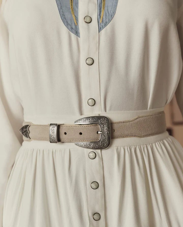 Made in collaboration with Stetson, whose legacy of authentic craftsmanship has defined the spirit of the West since 1865, this special edition tapered belt is crafted from rich, supple suede leather and features an engraved three-piece silver-tone buckle set.