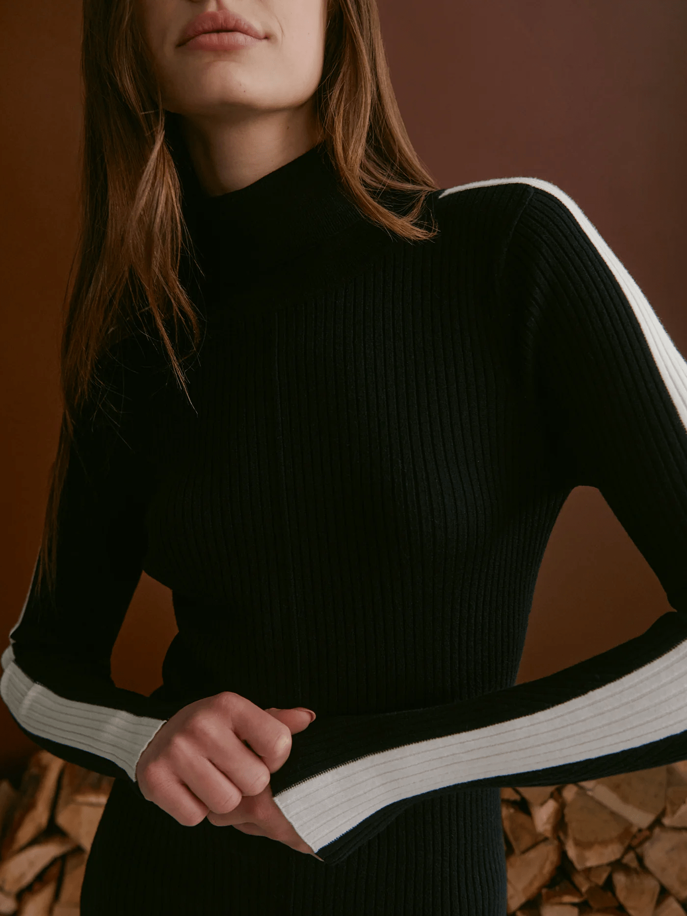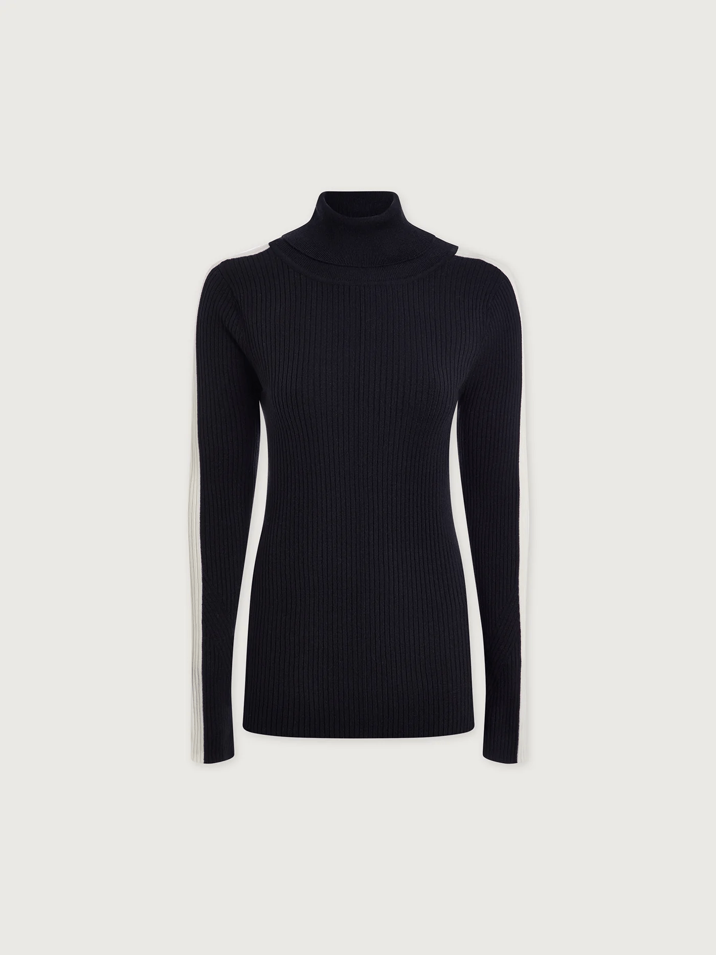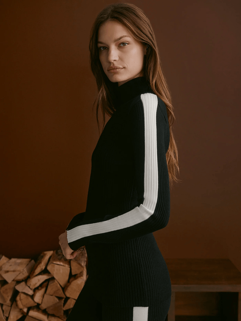 A versatile knitted baselayer for the cold season, the Leopold is a slim-fitting roll-neck knit crafted from Soft Viscose in a fine-gauge rib. Contrast panels across the shoulders and down the sleeves and a seam detail down the front create a chic, elongated silhouette. Pair with the Aiden legging for a comfortable yet coordinated look.