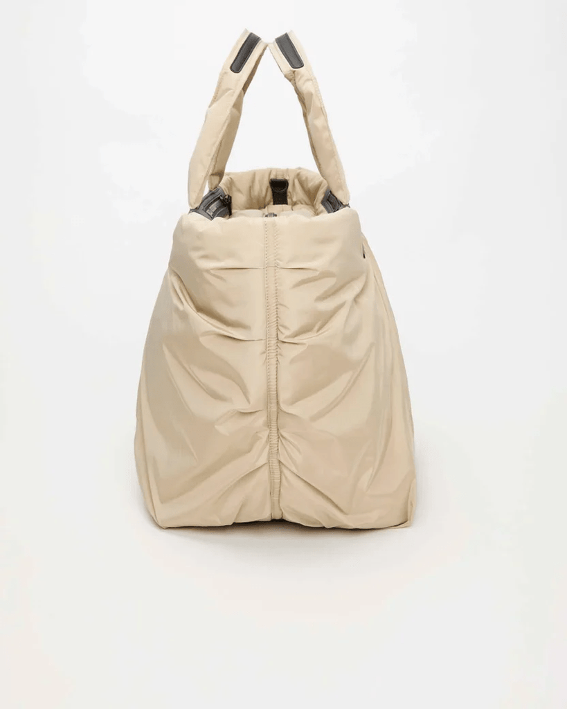 Inspired by classic vintage bomber jackets, the Caba Weekender is a bold, fashion-forward design that masterfully plays with proportions and elegant ruching. The Weekender bag is perfect for our frequent travelers – as it fits comfortably in the overhead airplane compartment – or for those of you on the go who simply need a really big bag.