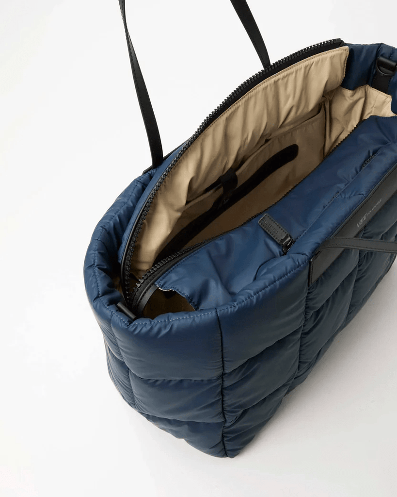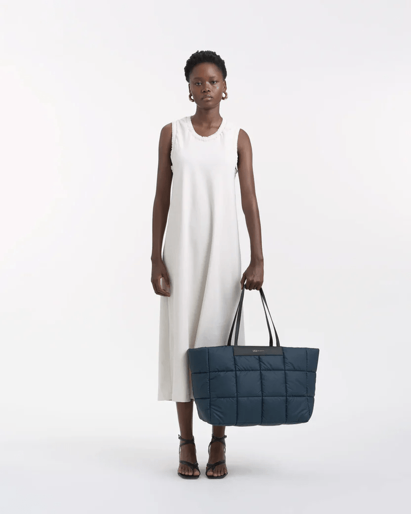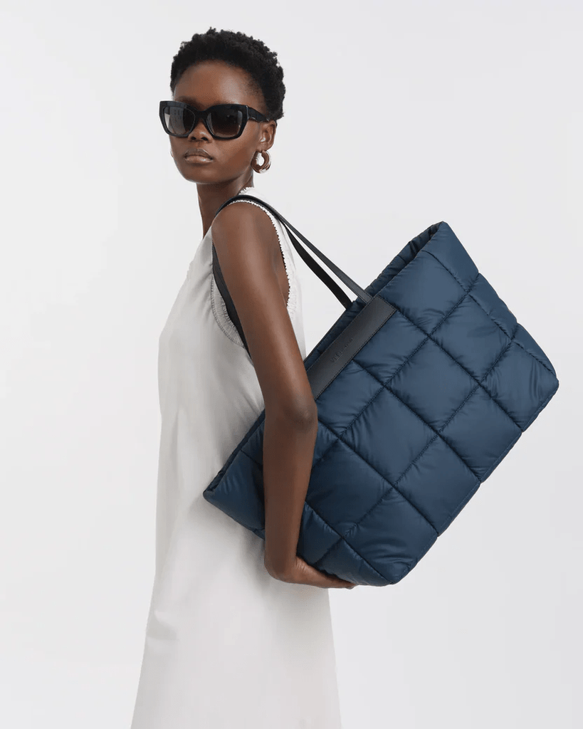 The Porter Marché Large, characterized by our bestselling quilted, puffy square pattern, has a striking rectangular shape and elegant, clean lines. With longer vegan leather handles and a spacious interior, it is the perfect bag for gym, travel, work, shopping and leisure. Designed to actually carry stuff, this Marché tote adapts to each situation, becoming exactly what you need it to be.