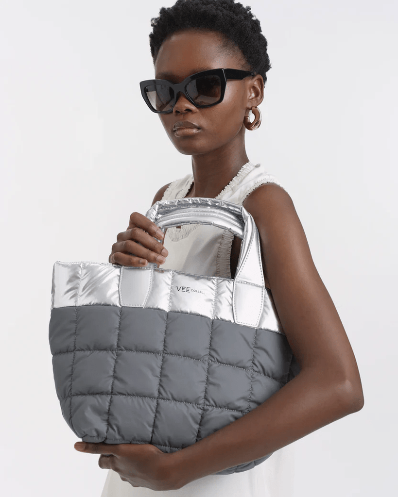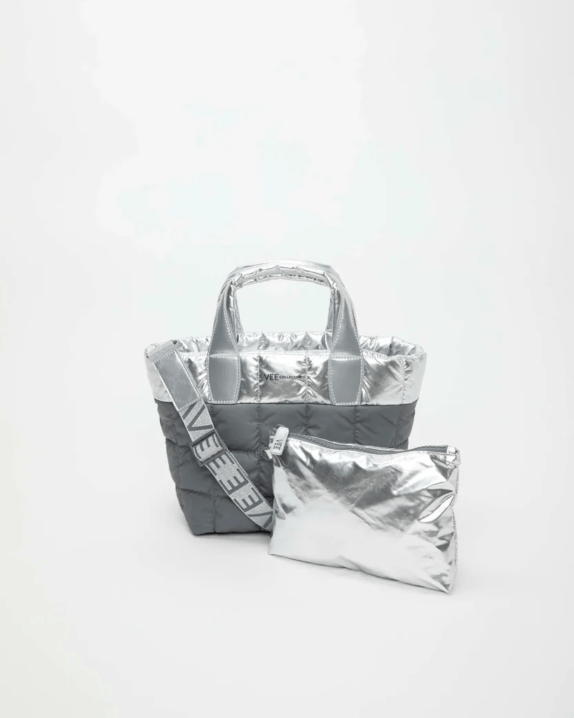 VEE COLLECTIVE Small Tote bags are made of 100% recycled and vegan materials. Fabrics are lightweight, durable, water and stain resistant.
