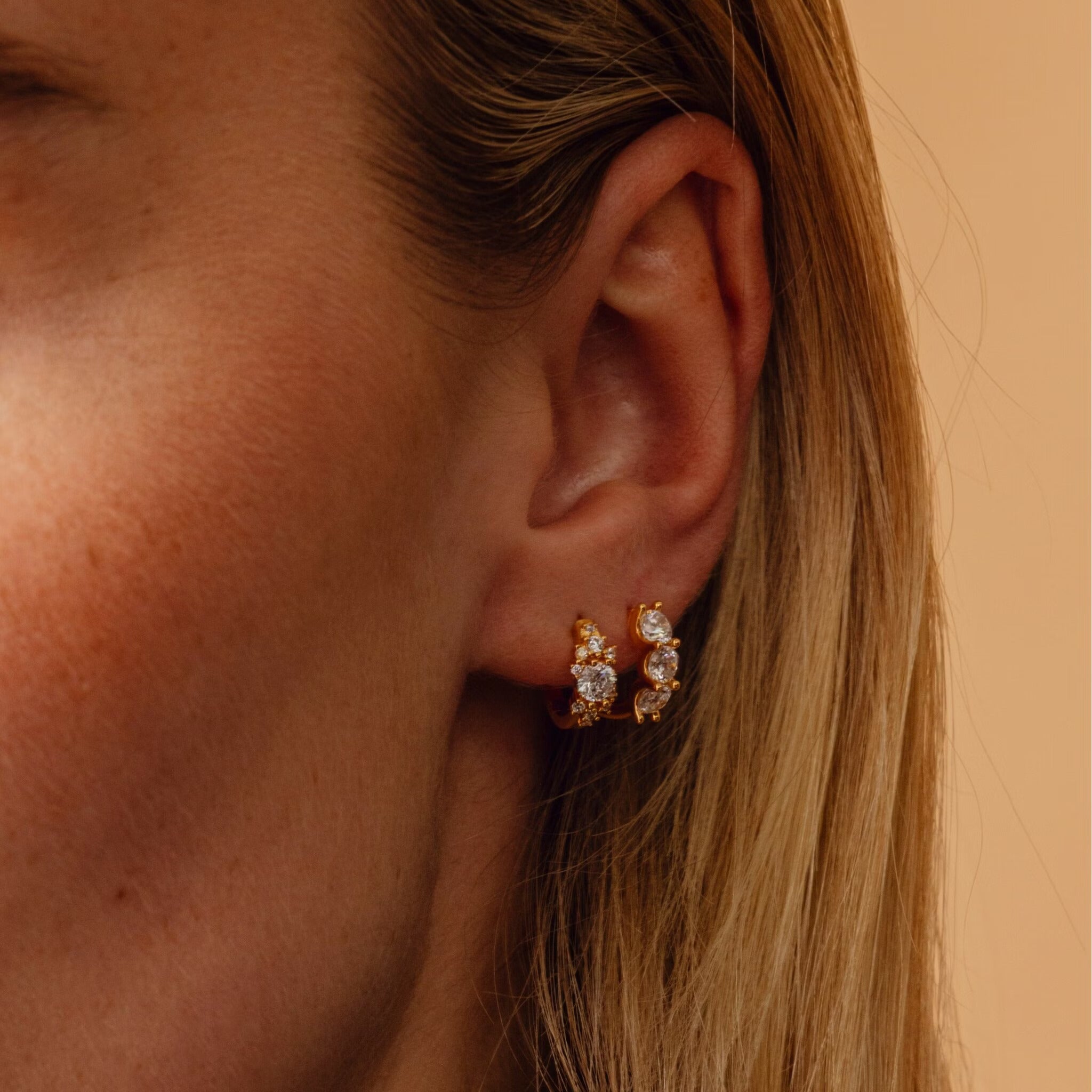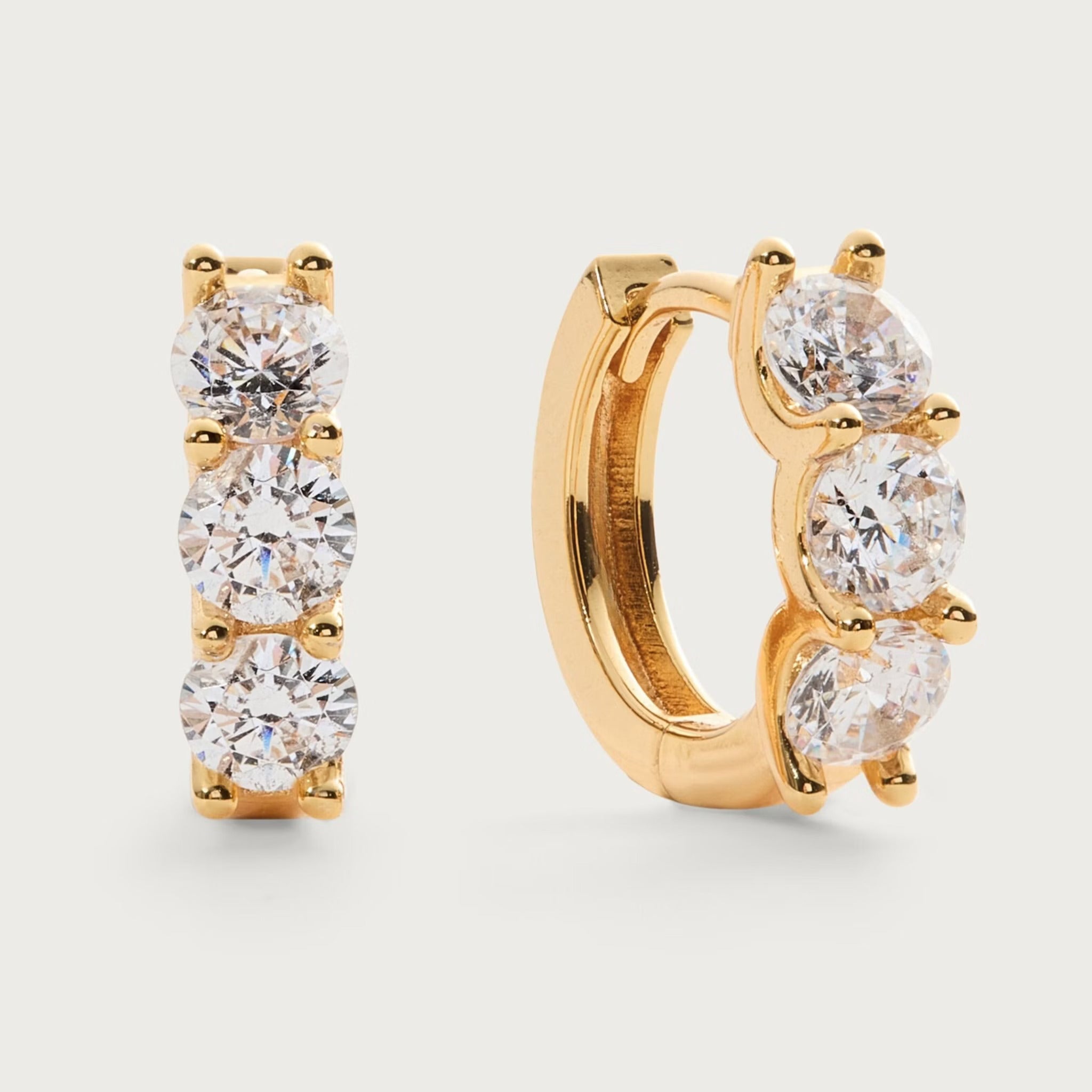Relaxed but never boring these hoops are adorned with hand set zirconia stones and made to shine all weekend long.