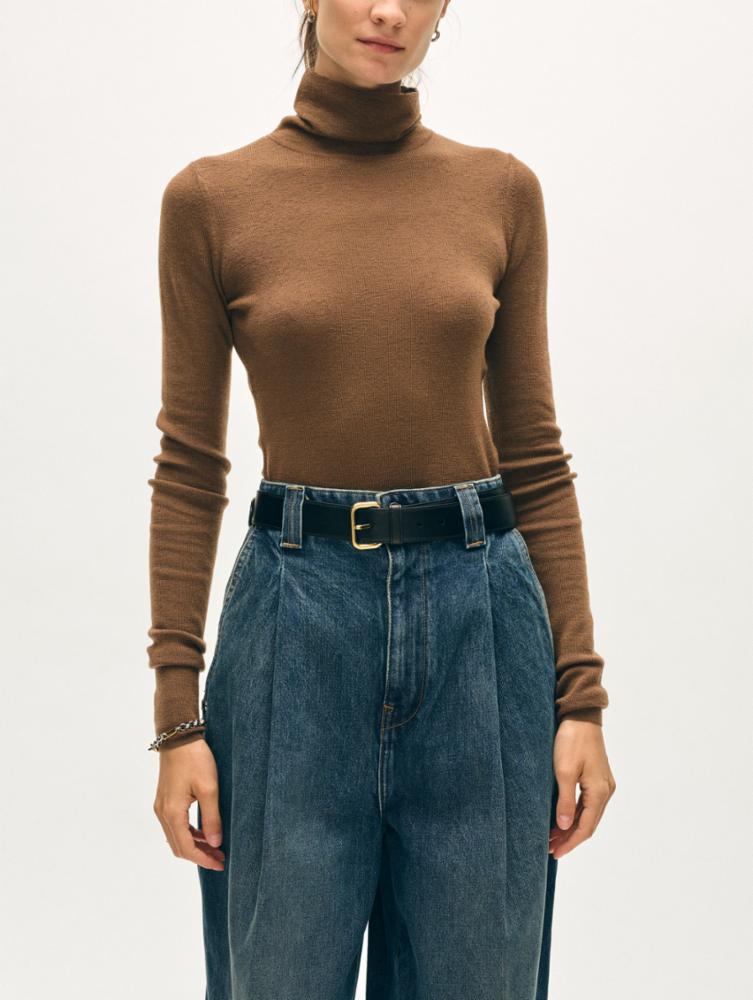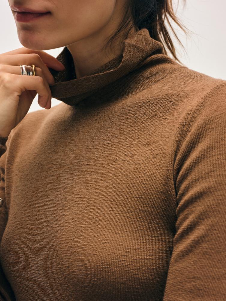 Superfine Merino Fitted Turtleneck in Burnt Caramel
