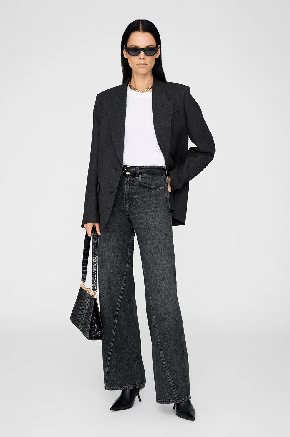 The Brie Jean features a relaxed silhouette constructed from light-to-midweight rigid cotton denim without stretch featuring a soft hand and slight drape in a dark wash with subtle veining throughout.