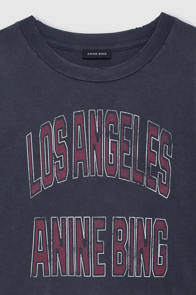 - Faded red 'LOS ANGELES ANINE BING' screen print graphic with white outline at front