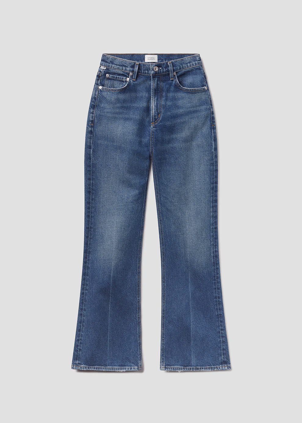 The Kimberly is a high-rise flare inspired by classic '70s silhouettes, designed to elongate the leg and contour the waist. Crafted from comfort stretch denim with a super soft hand, it offers lasting shape and all-day ease. The Cruise wash—a medium-to-dark indigo with soft fading and marbling—adds vintage character. Style with slim knits or structured shirting for a clean finish.