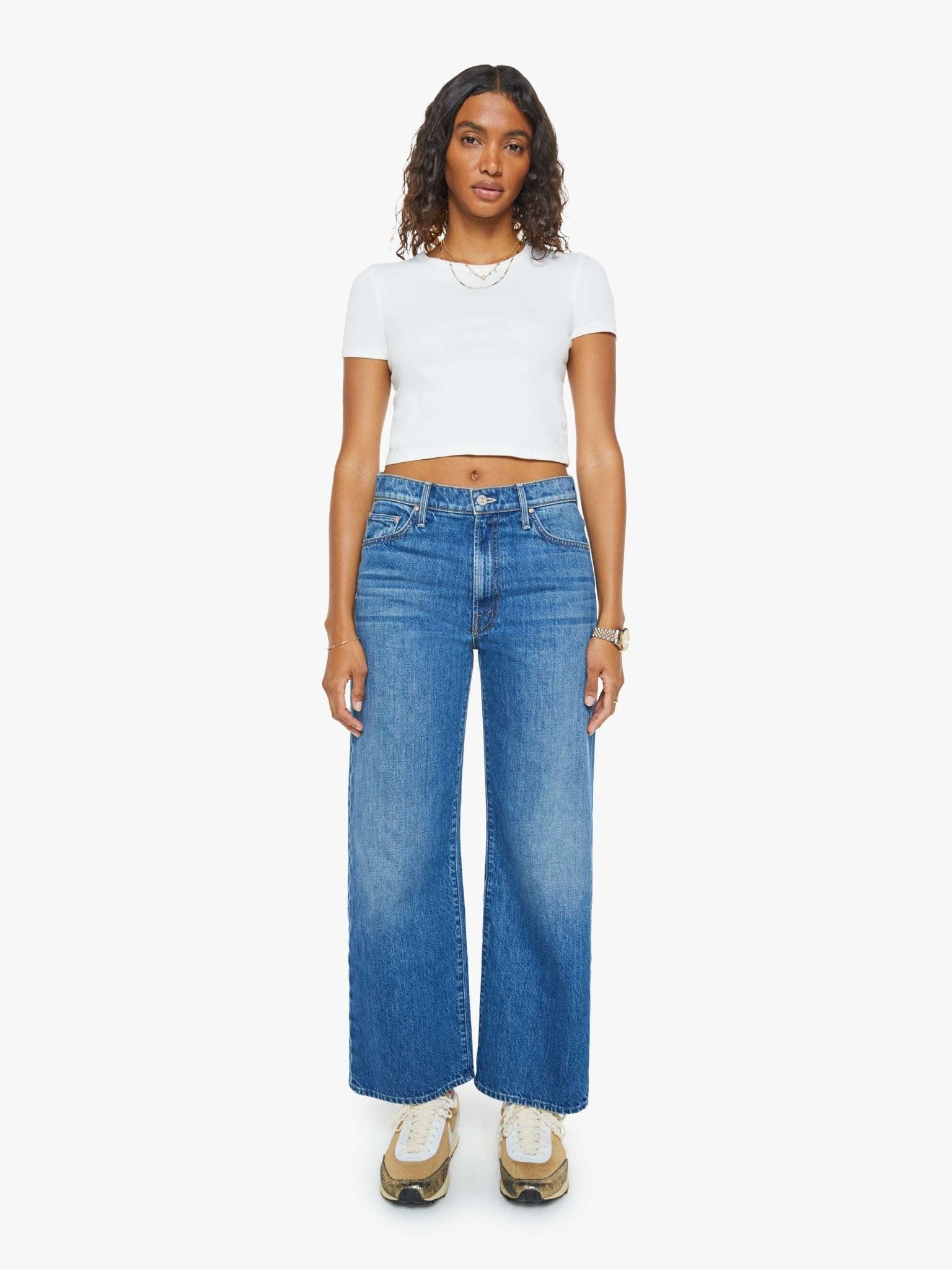 Plant whisperer. Jeans designed to sit lower on the hips with a loose wide leg and an ankle-length inseam. Cut from rigid SUPERIOR denim, Green Thumb is a classic mid-blue with subtle whiskering, fading.