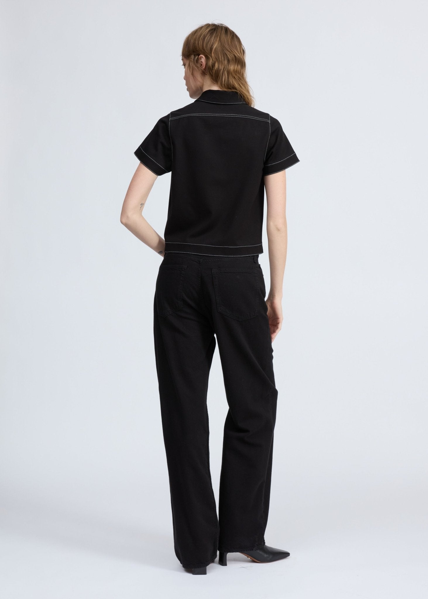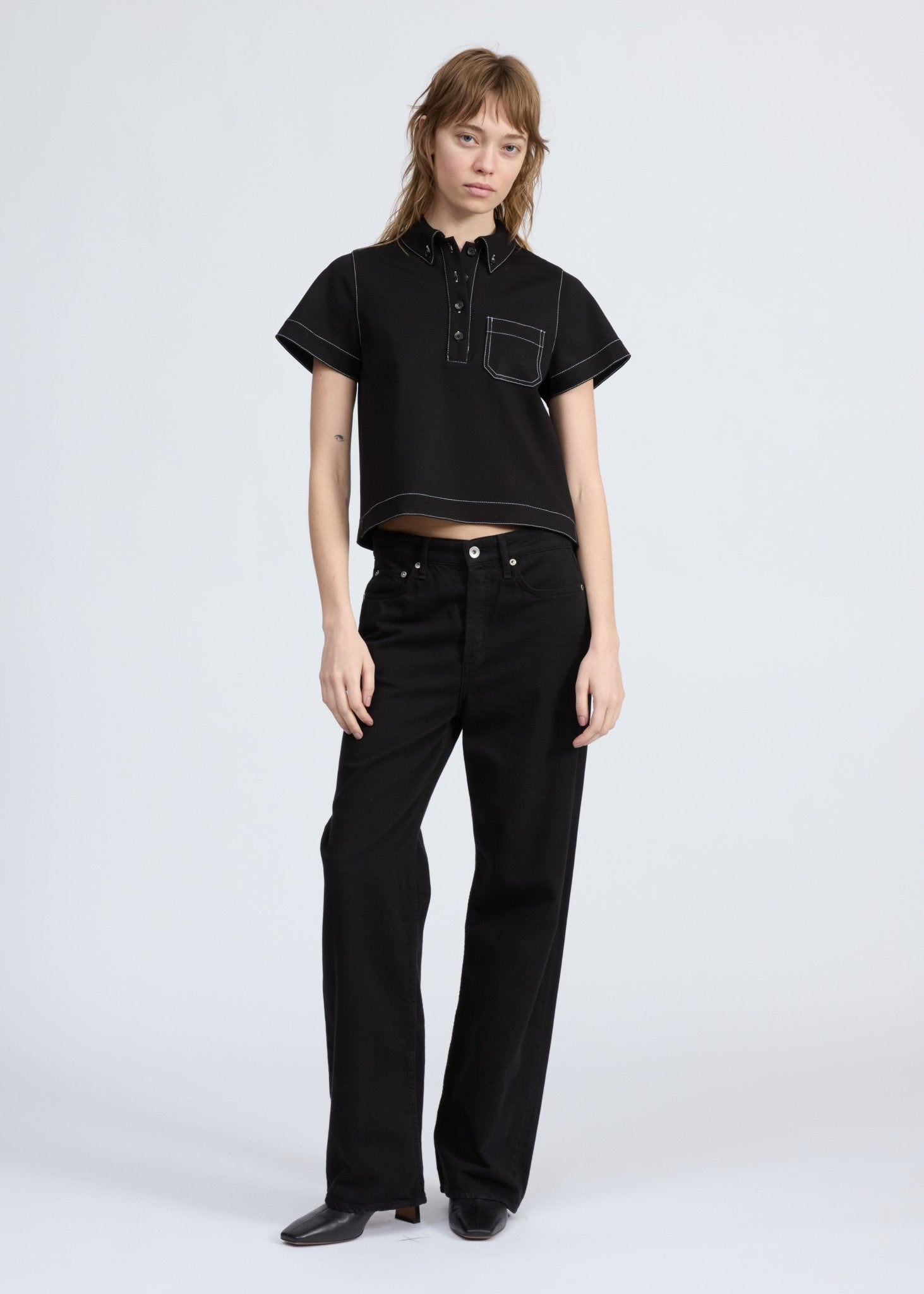 Irina Contrast Stitch Polo in Black
