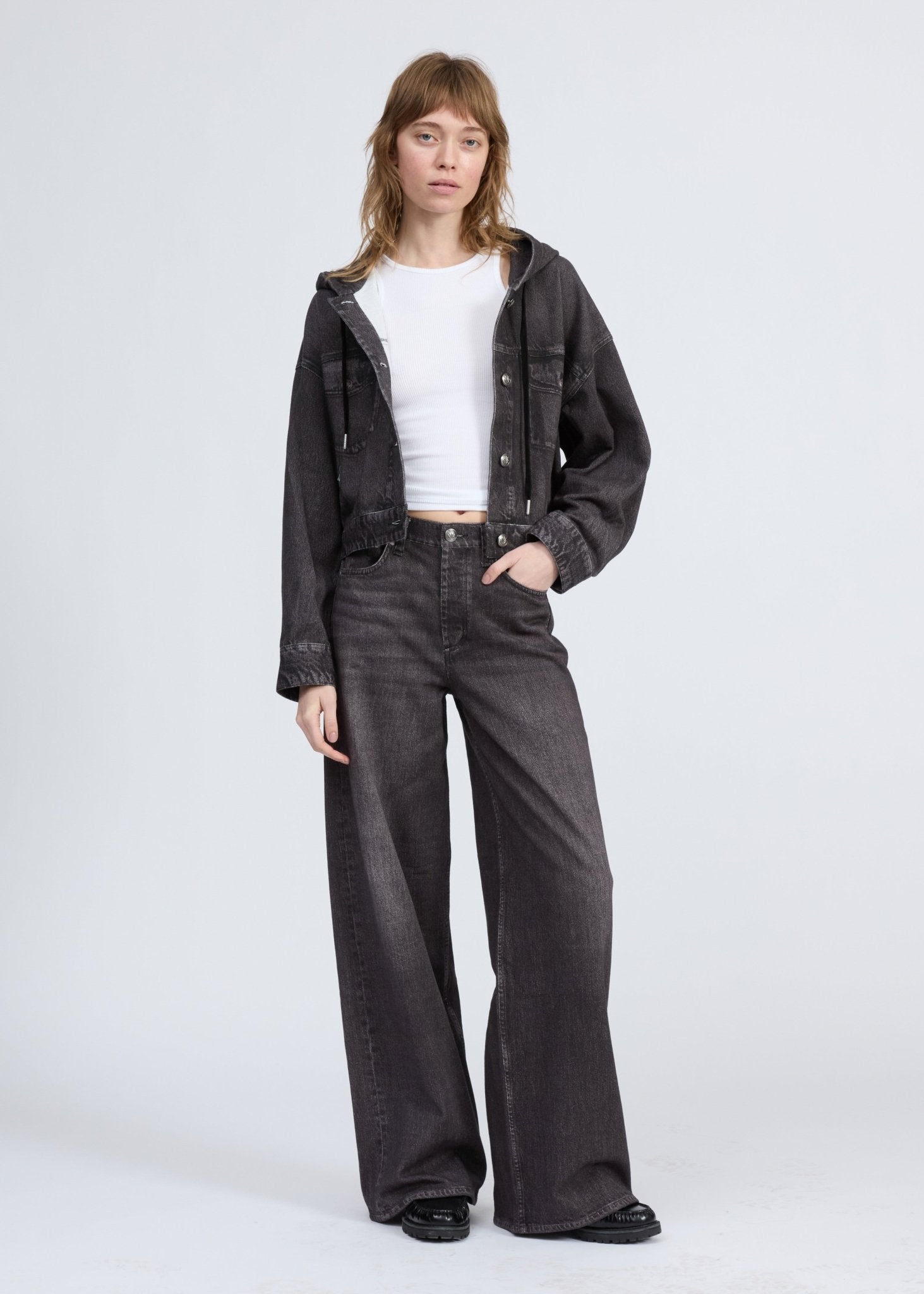 Miramar Terry Hood Trucker Jacket in Faded Black