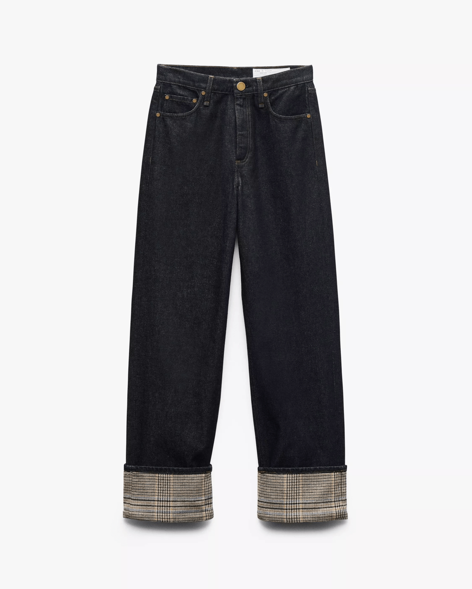 • Lightweight Rigid Denim in Twilight Rinse Combo, an inky dark wash with a sewn-down 4" cuff trimmed at the face with an Italian-milled heritage wool plaid