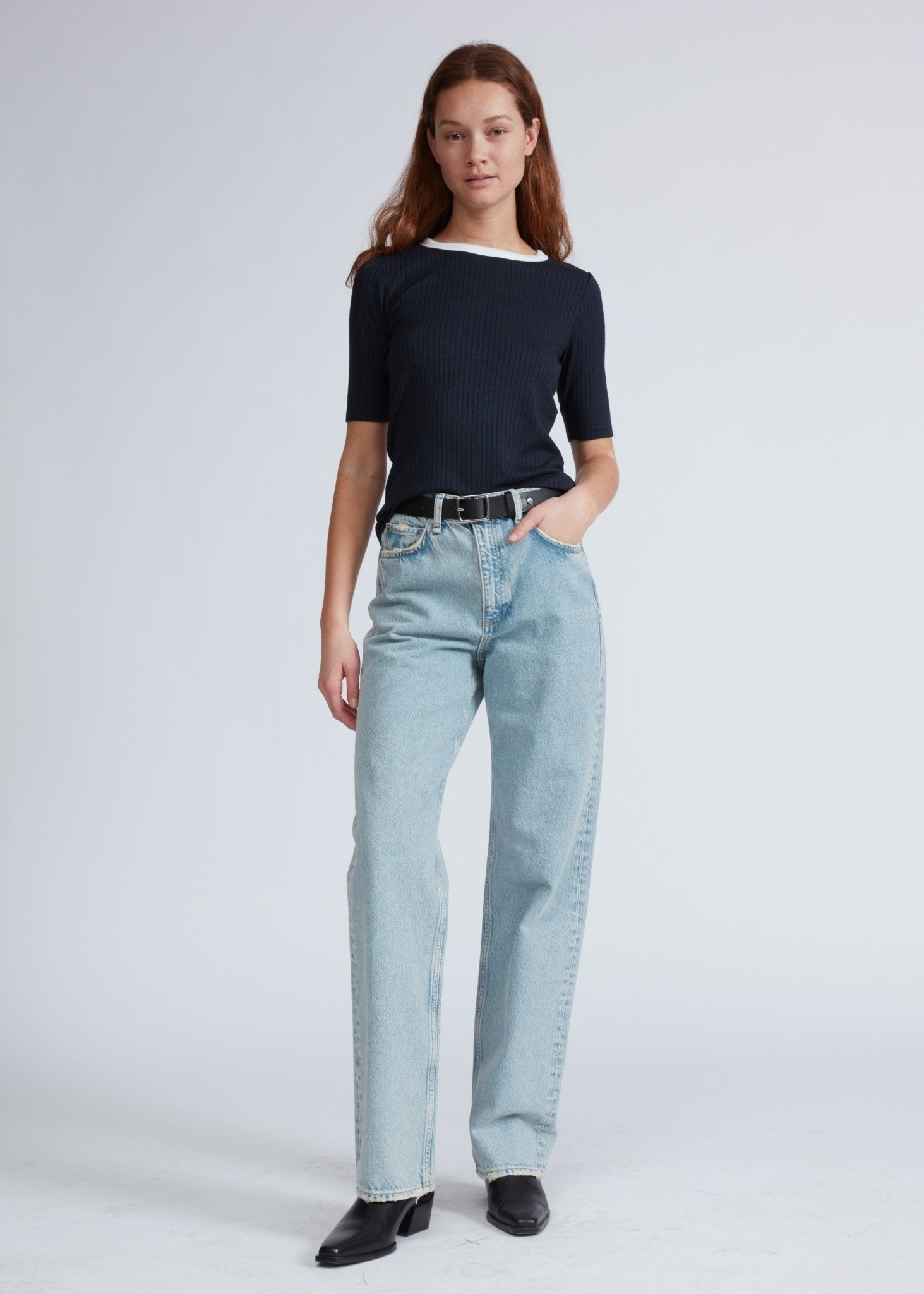 The Knit Contrast Ringer Tee in Salute - XS is backordered and will ship as soon as it is back in stock.