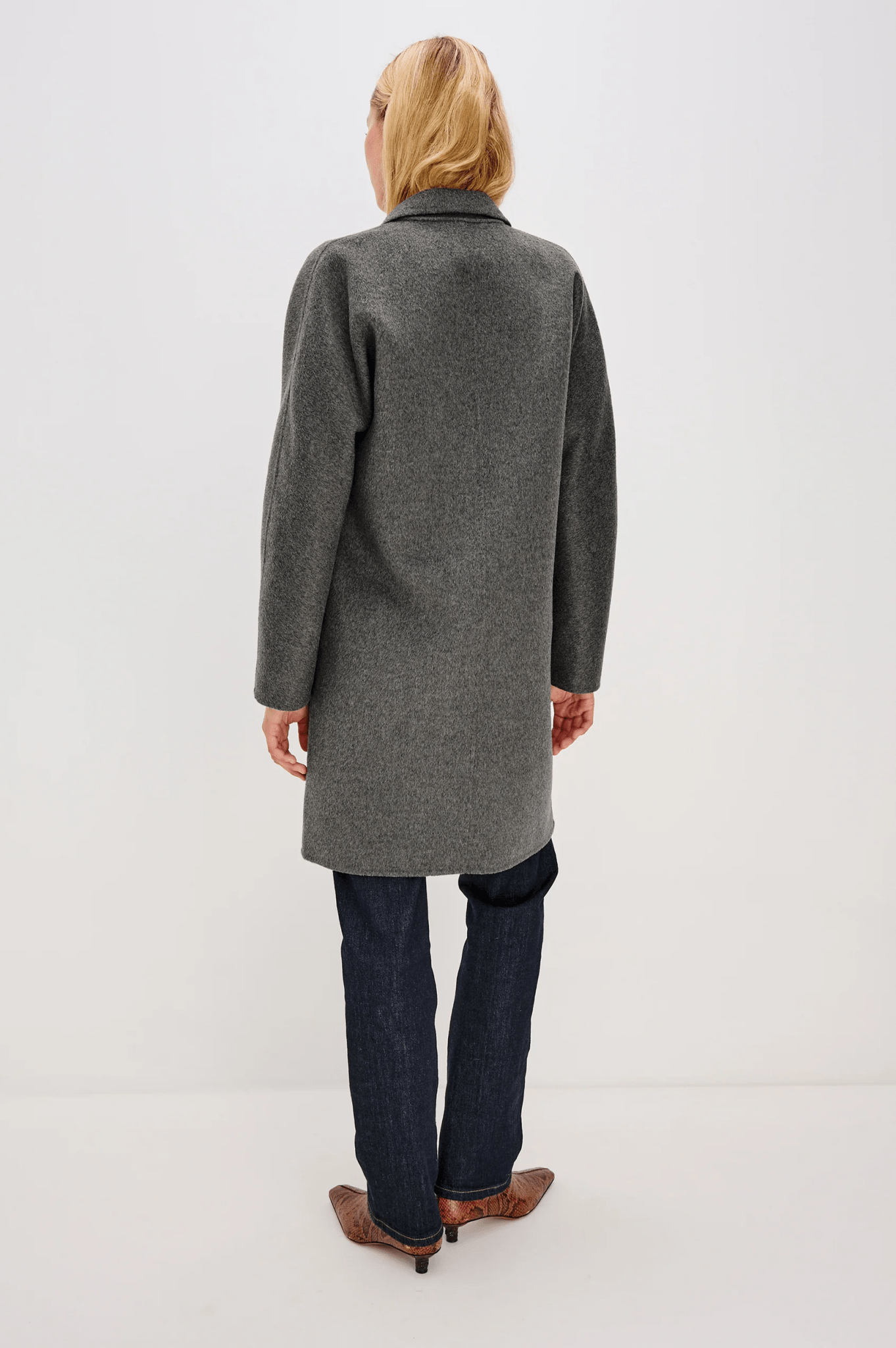 Designed from a heavy wool blend with functional patch pockets and a longline lapel, the Everest is a modern coat perfect for sophisticated layering.
