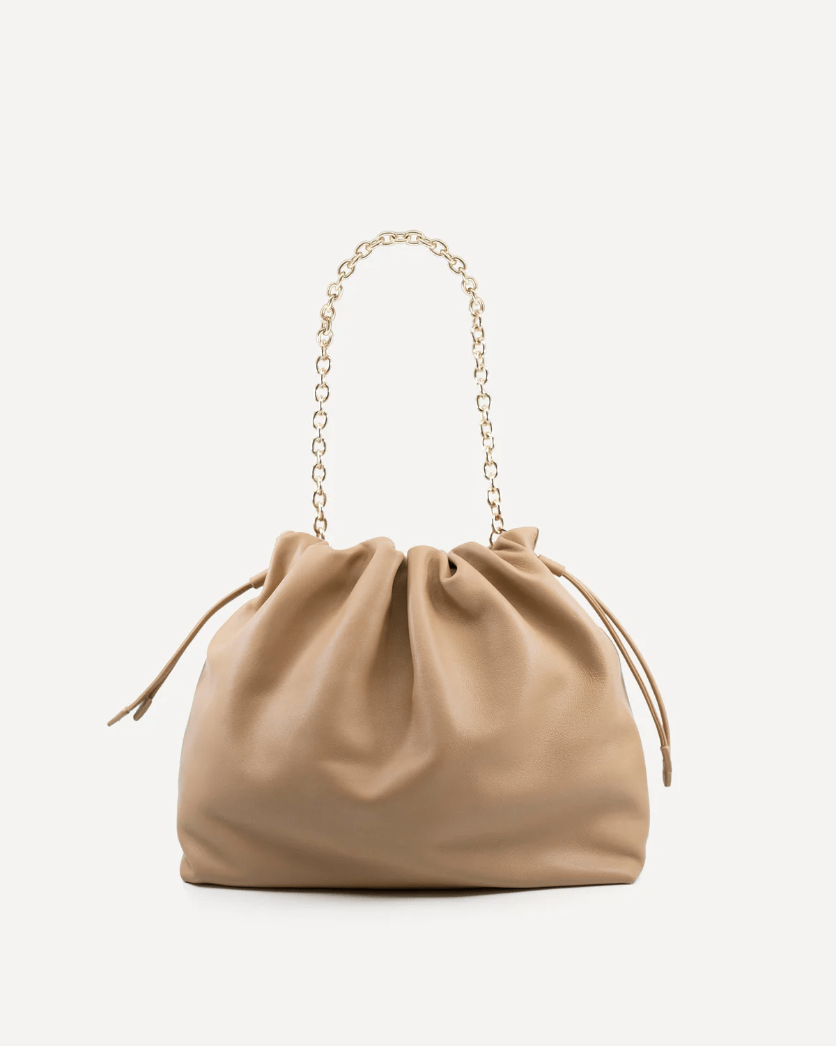 The Alexandra Drawstring Clutch is the newest addition to our core collection and is available in our classic colours of Beige, Black and Stone as well as seasonal colours.