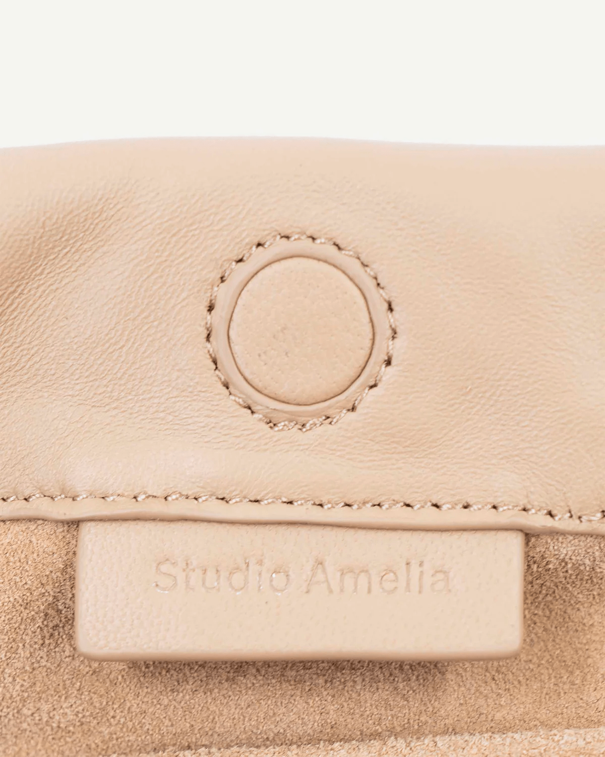 The Alexandra Drawstring is a reinvented look at one of Studio Amelia's signature styles, with a luxuriously soft suede lining.