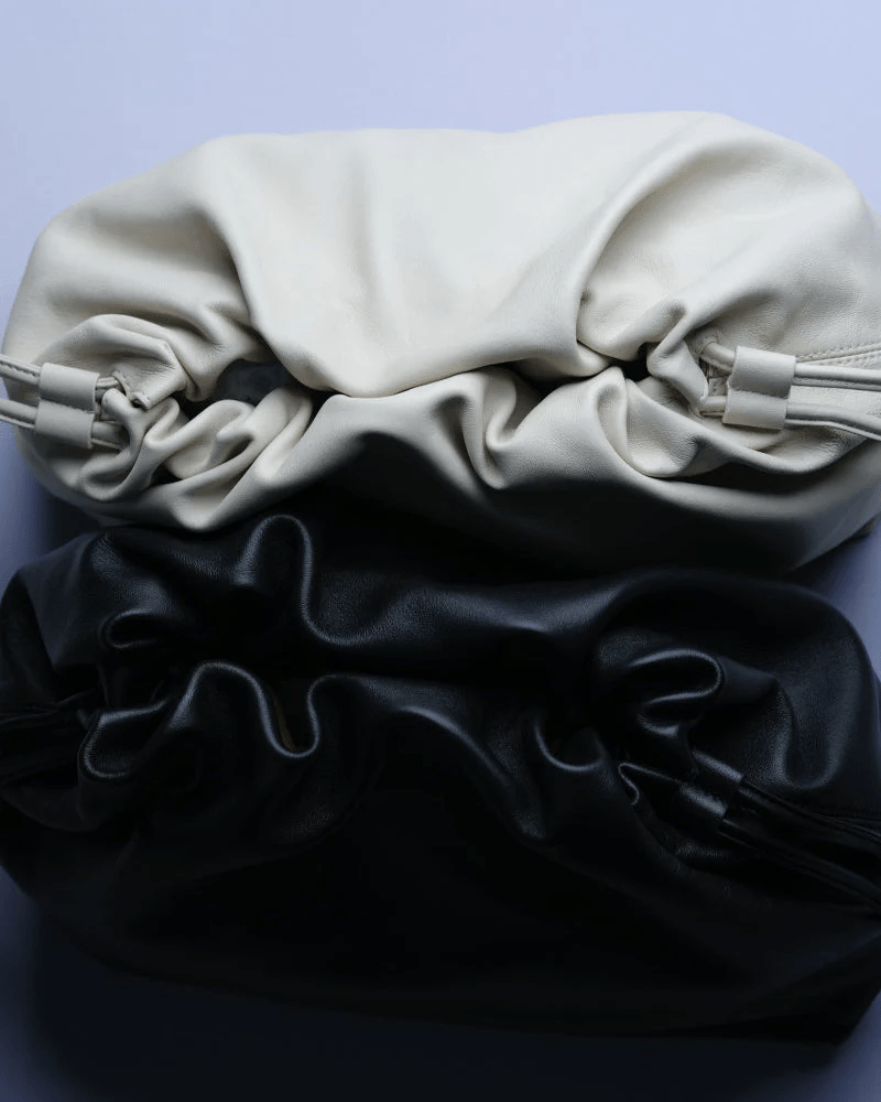 The Alexandra Drawstring Clutch is the newest addition to our core collection and is available in our classic colours of Beige, Black and Stone as well as seasonal colours.