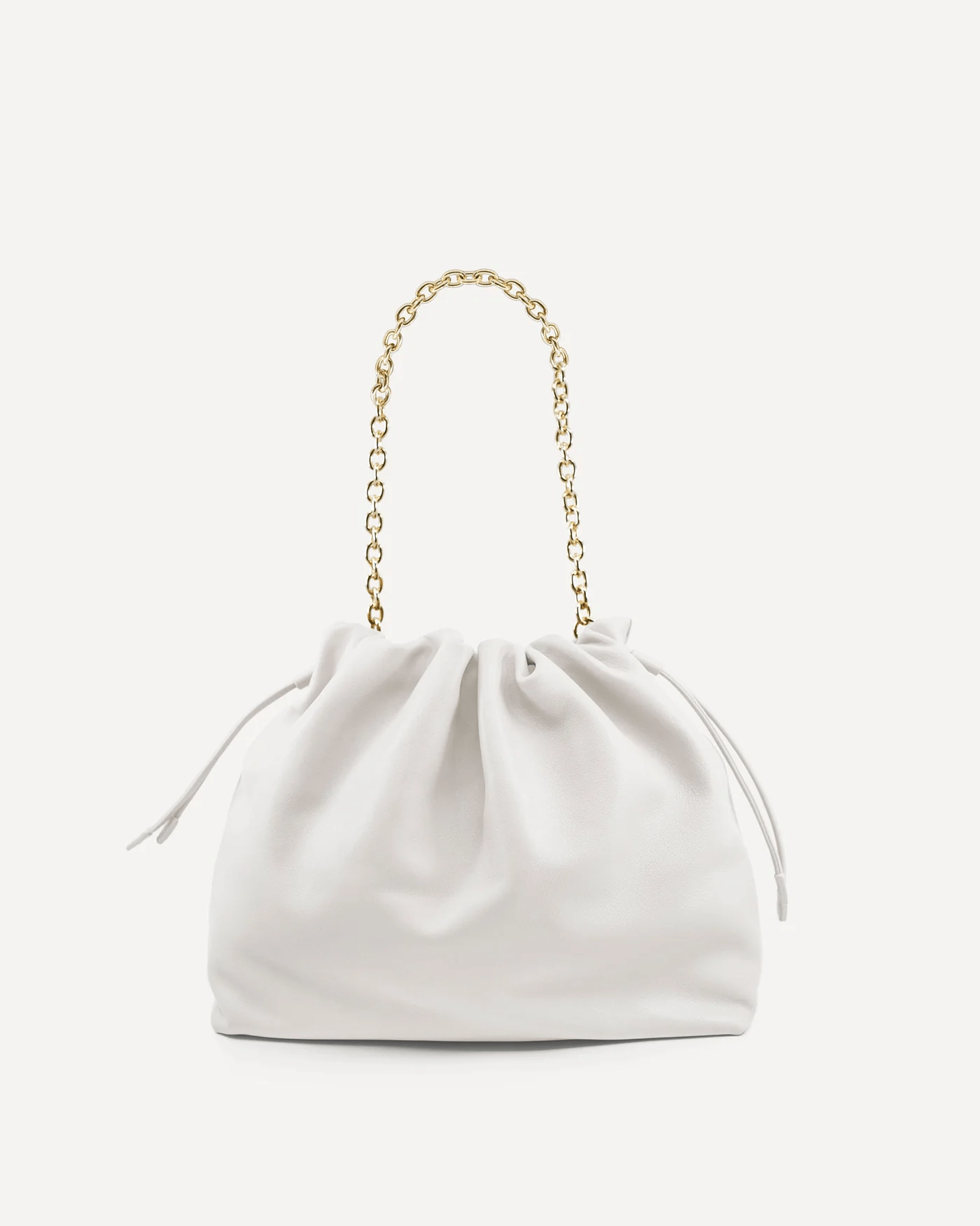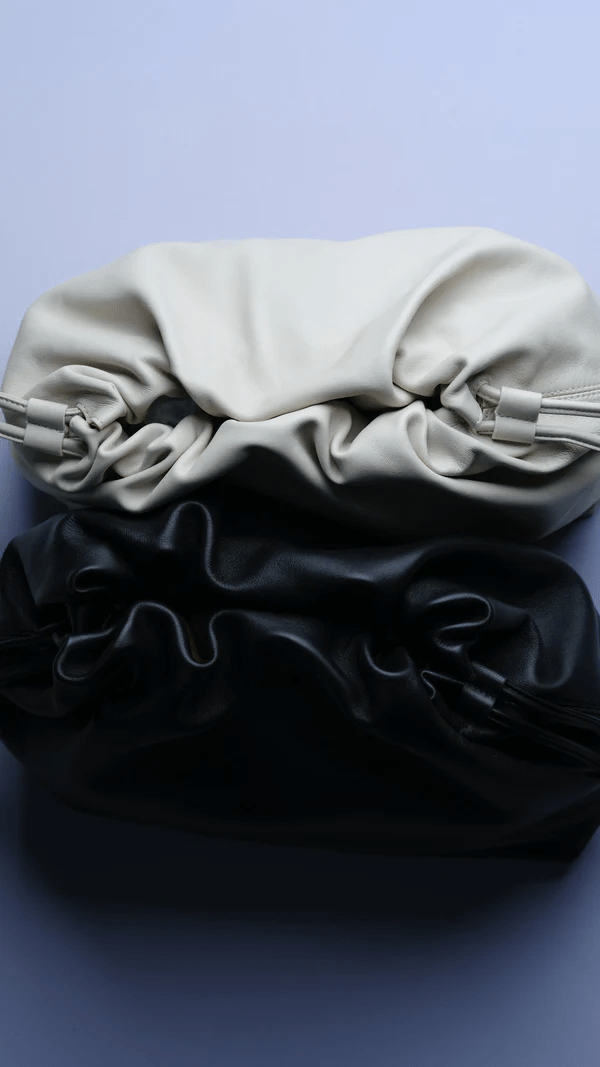 The Alexandra Drawstring Clutch is the newest addition to our core collection and is available in our classic colours of Beige, Black and Stone as well as seasonal colours.