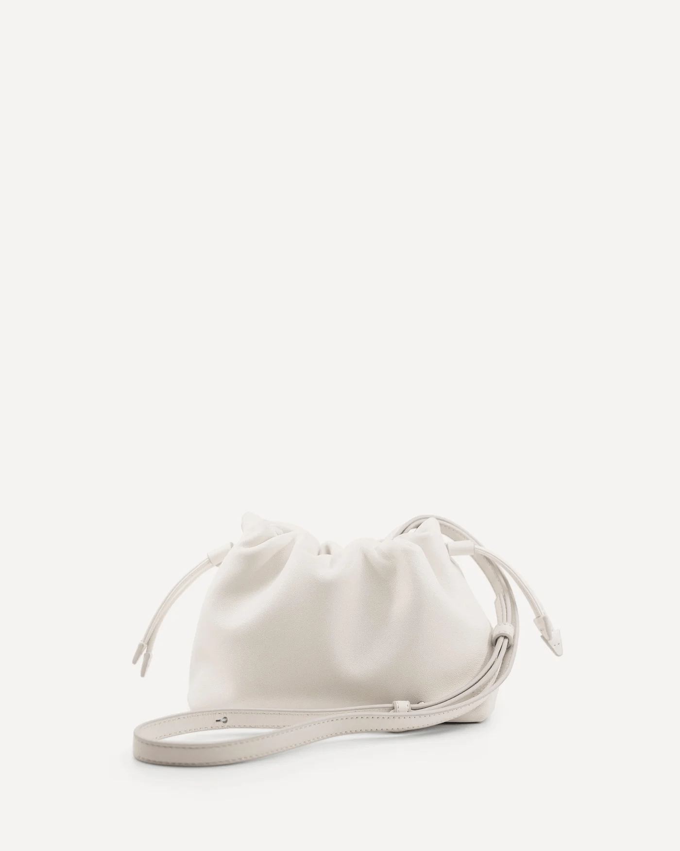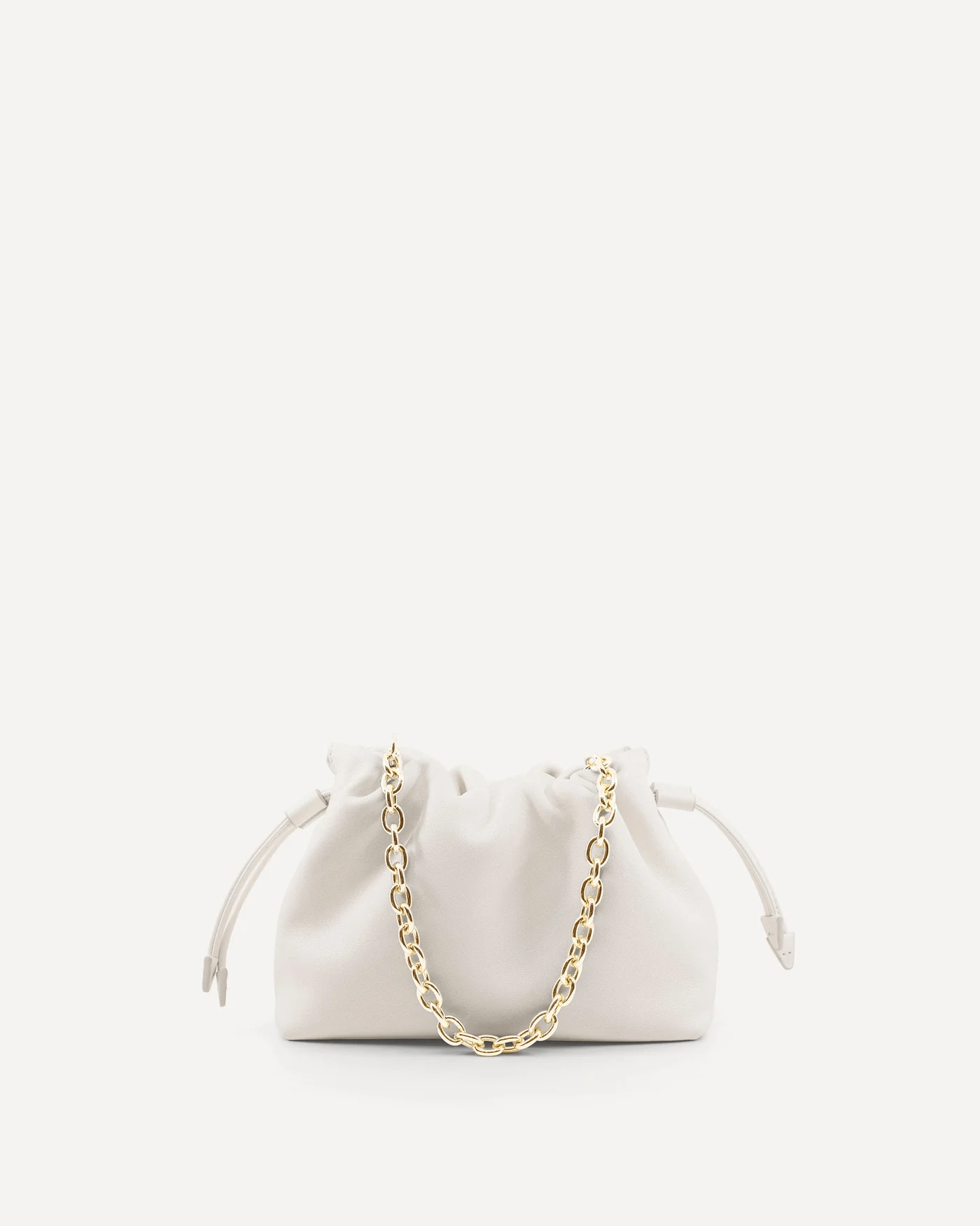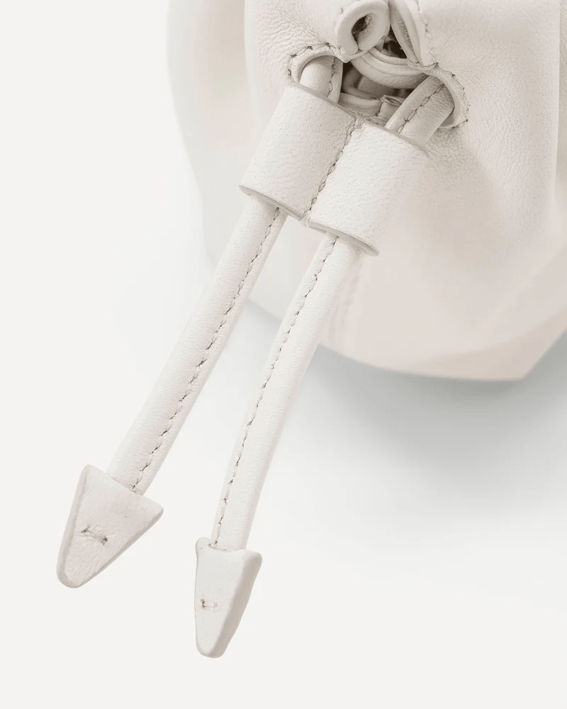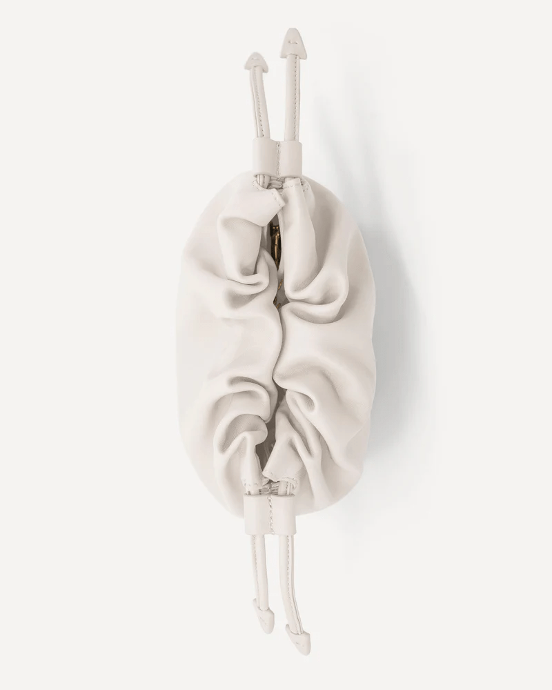 The Alexandra Petite Clutch is made from 100% Chrome-Free Sheep Nappa Leather with a luxuriously soft suede lining. This style features a ruched drawstring closure with statement arrow ends, an additional magnetic closure, an internal card pocket, a removable crossbody strap with custom Studio Amelia lobster clasps and a statement gold plated circular chain handle.