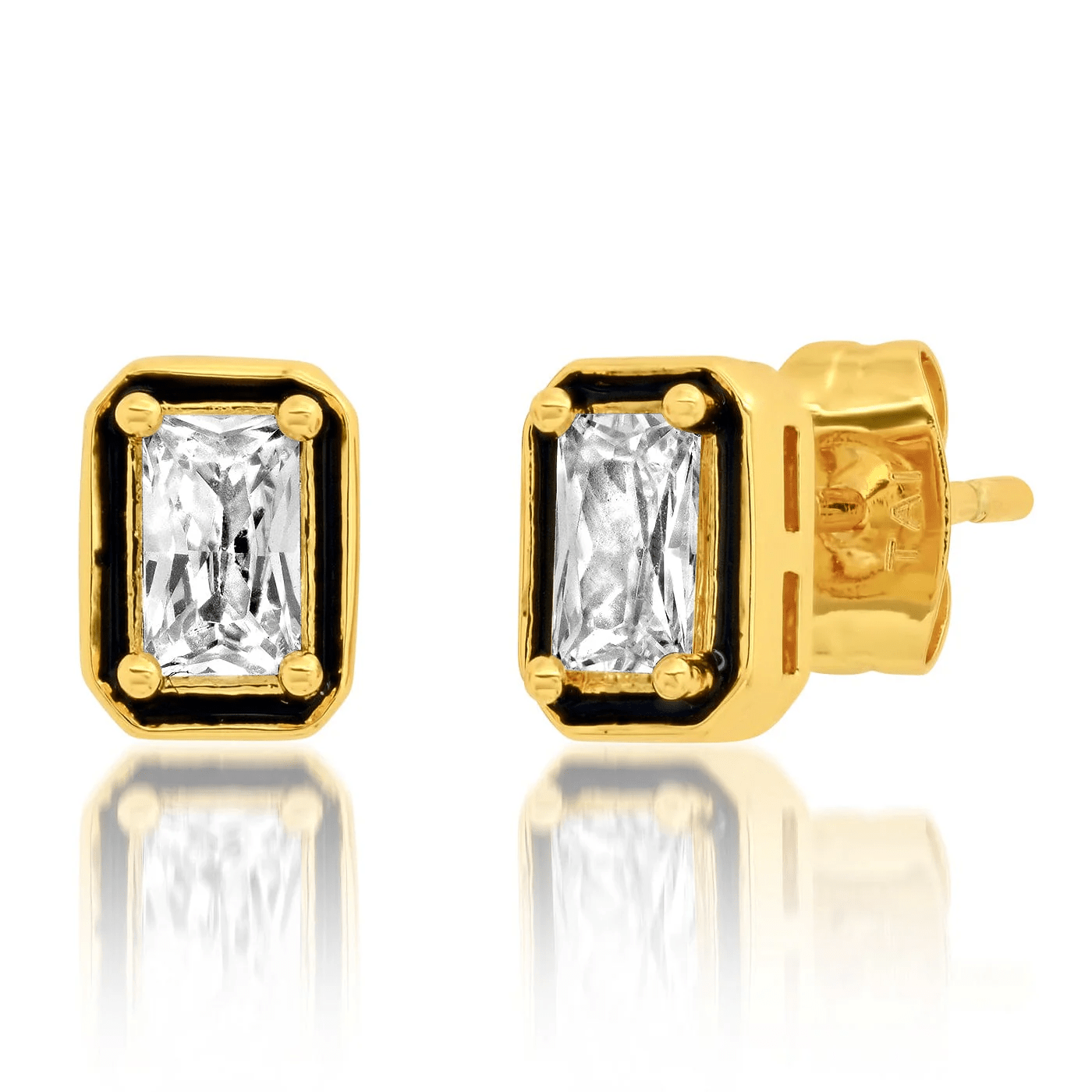 Mix fun and elegance with these gold-plated brass baguette studs! Featuring CZ & enamel accents, these gorgeous earrings are 7mm from top to bottom and perfect to wear on their own or with multiple piercings.