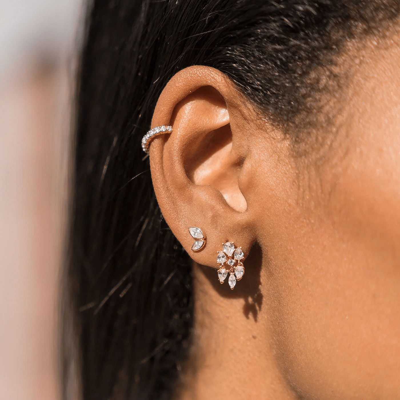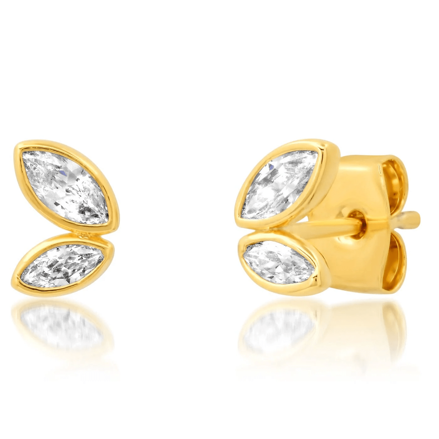 Marquis CZ Studs are the perfect addition to your earring stack. Crafted from gold-plated brass and featuring sparkling Marquis CZ stones, these studs add style and sophistication to any look. With their stunning sparkle and timeless silhouette, these studs are the perfect go-to accessory.