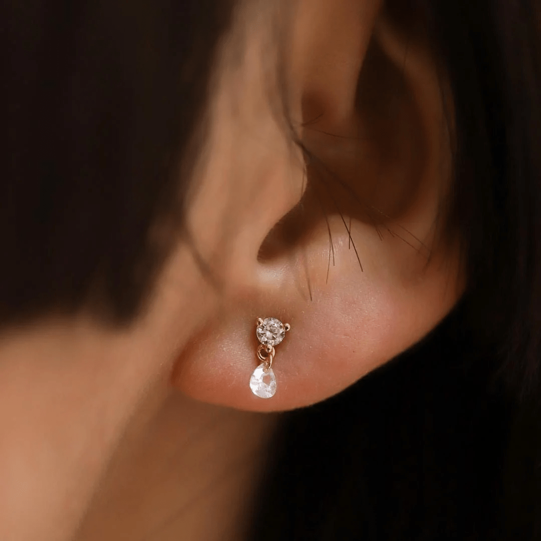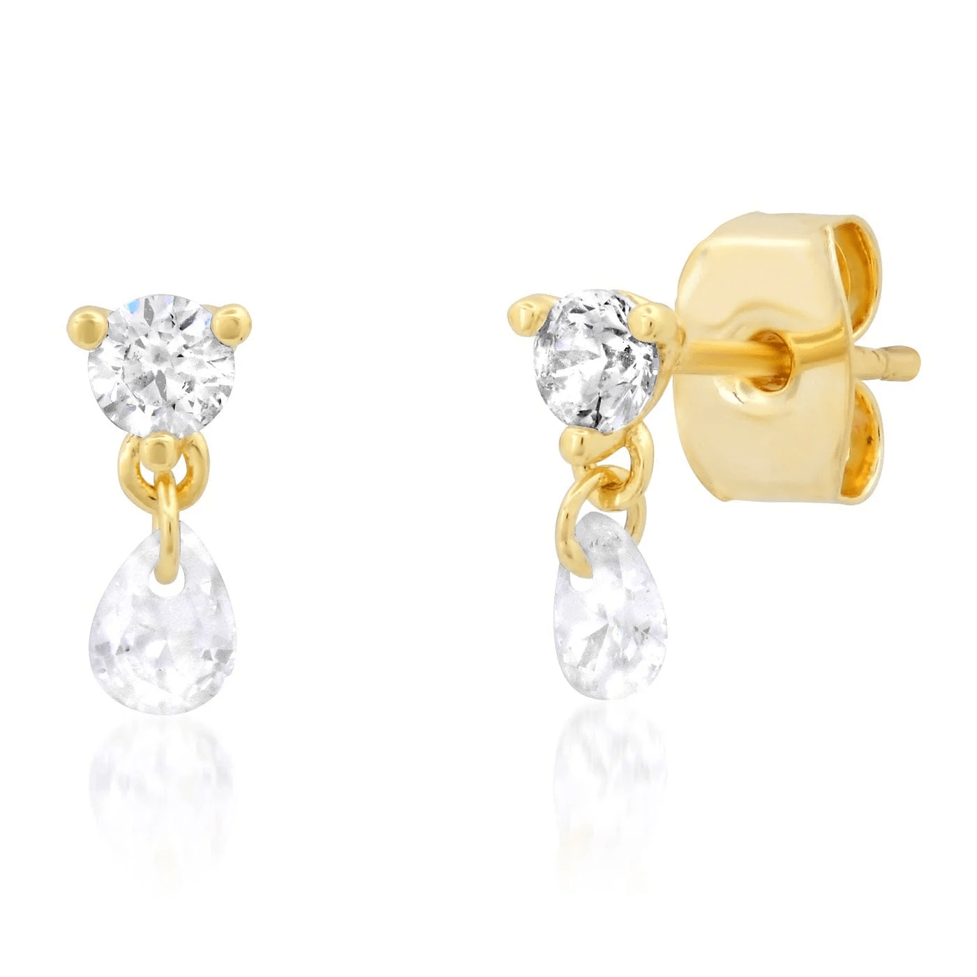 TAI - Round CZ Stud with Floating Pear CZ Drop #TE-4518 Gold