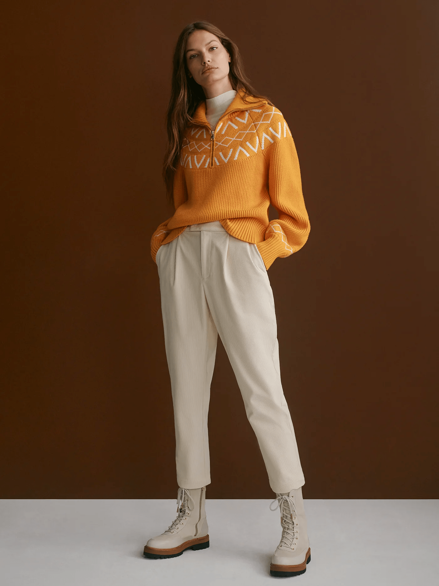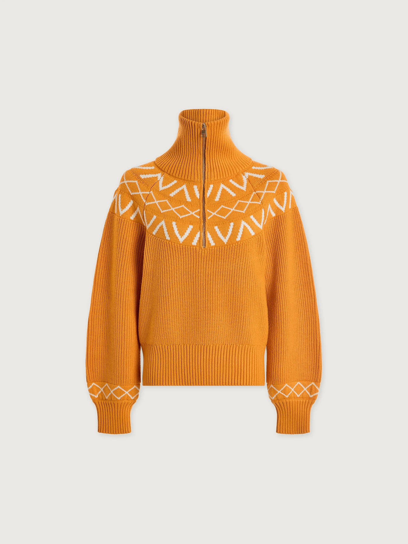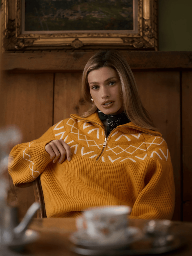 Add an extra layer of style to your winter wardrobe with the Sigrid, a soft half-zip knit with a Fairisle design.