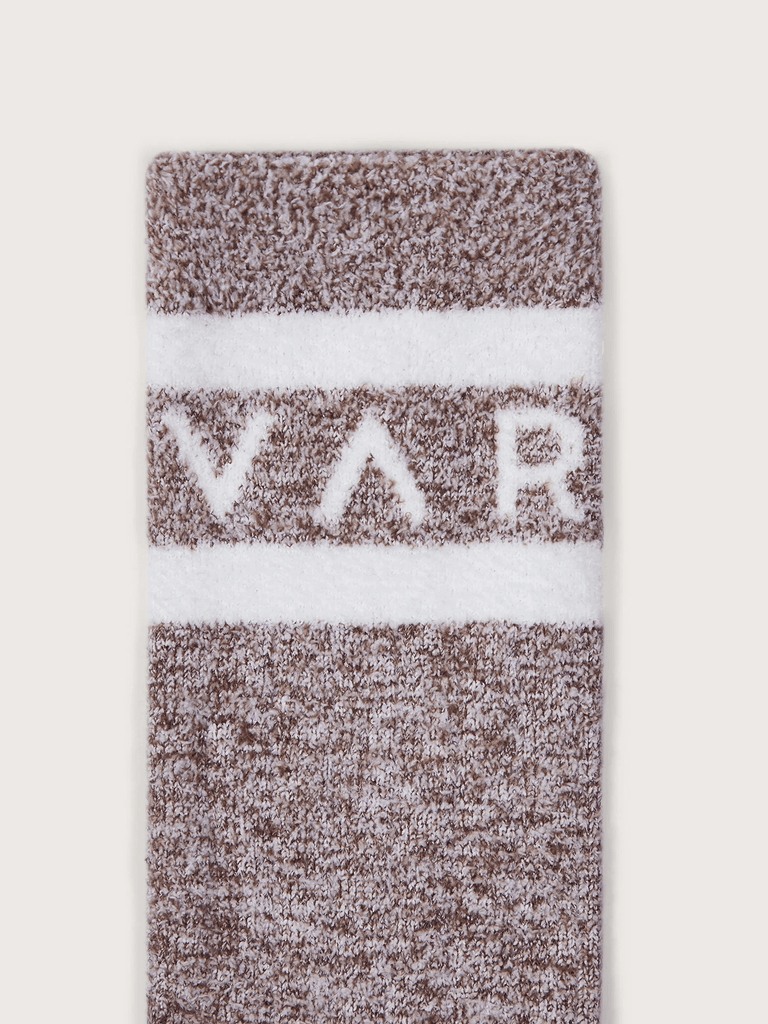 Woven in a bouclé-effect yarn, the Spencer Marl socks feature a Marl effect, a classic Varley logo stripe, and contrast heel and toe.