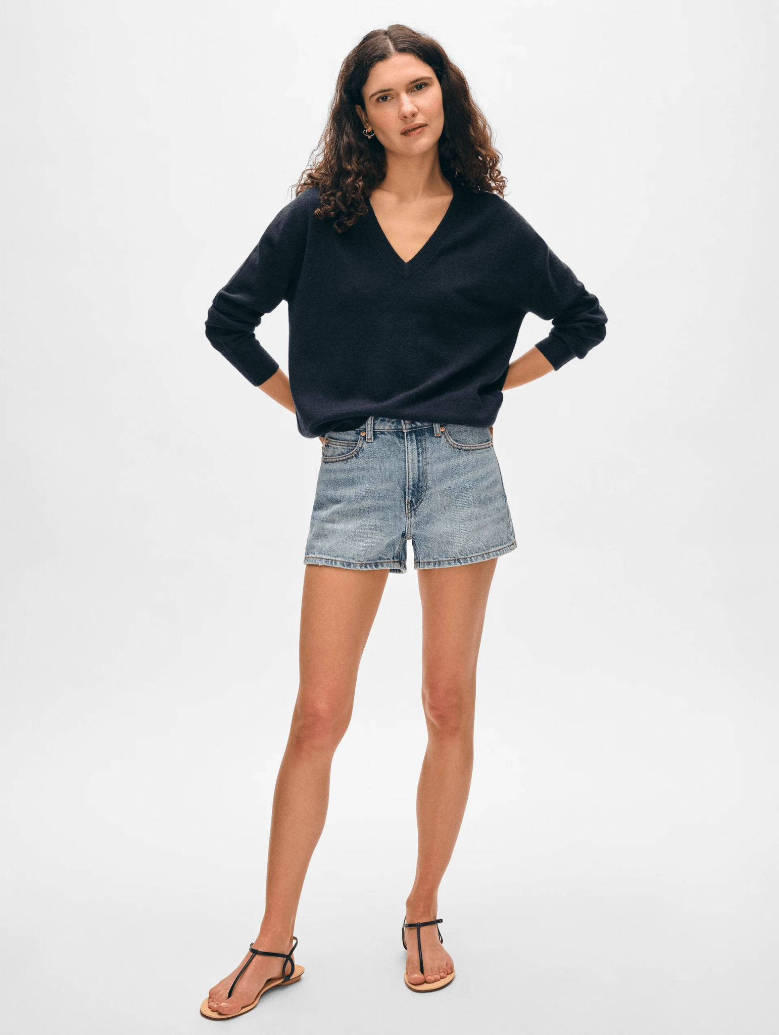 The best relaxed-yet-polished sweater, our Cashmere V Neck is a wardrobe staple that you'll love to live in. We redesigned this classic style with even more cashmere to achieve a relaxed fit, and added a center-back rib detail to enhance its styling power. It's spun from 100% responsibly sourced Mongolian cashmere in a classic weight for year-round wear and features a flattering V-neckline and neatly ribbed trim. The minimal style will make a great pairing with a high-waisted skirt or wide-leg jean.